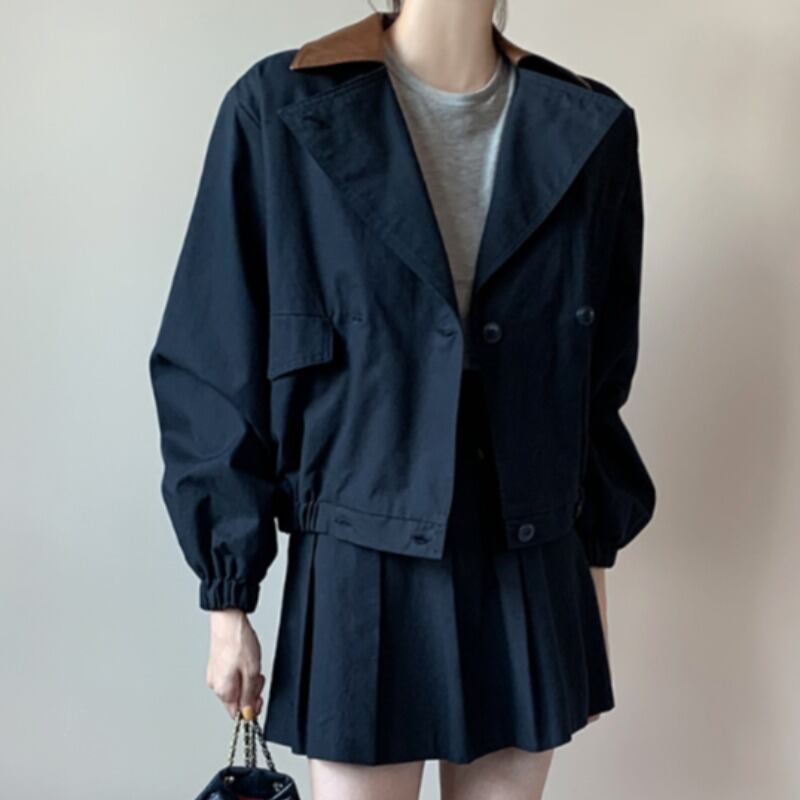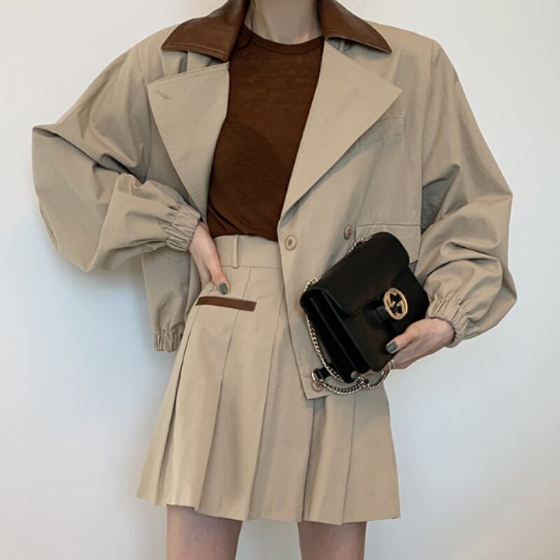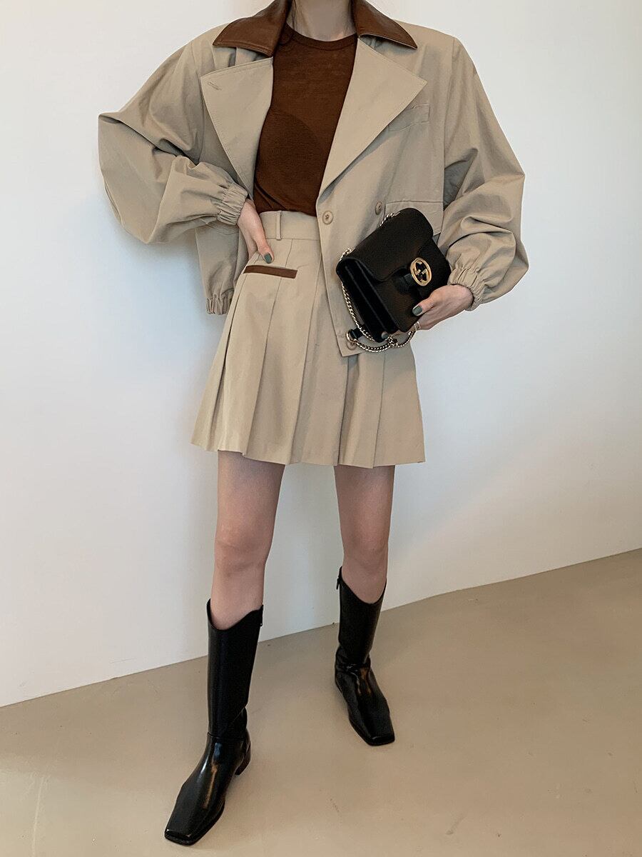 オータムスタンダードカラージャケット プリーツスカート レトロ 秋物 ICC_レディース75216459321