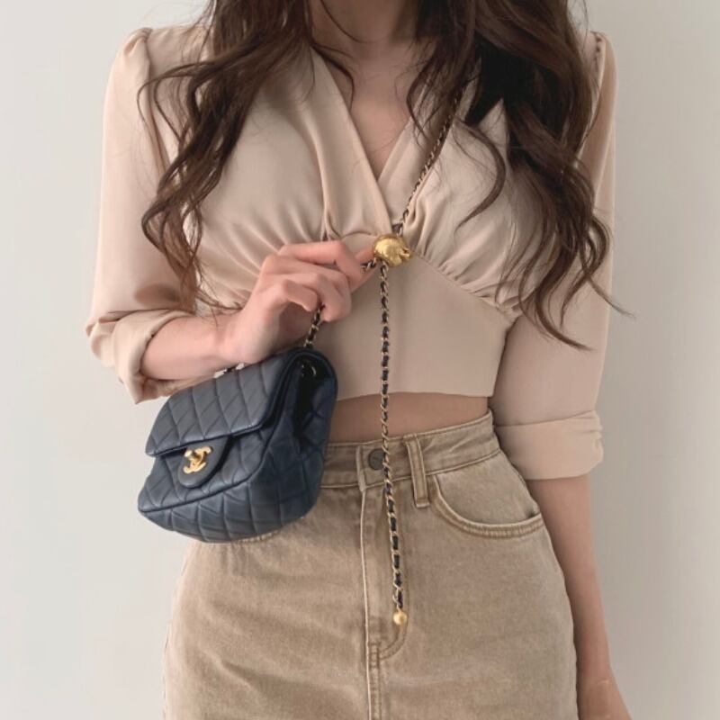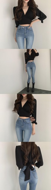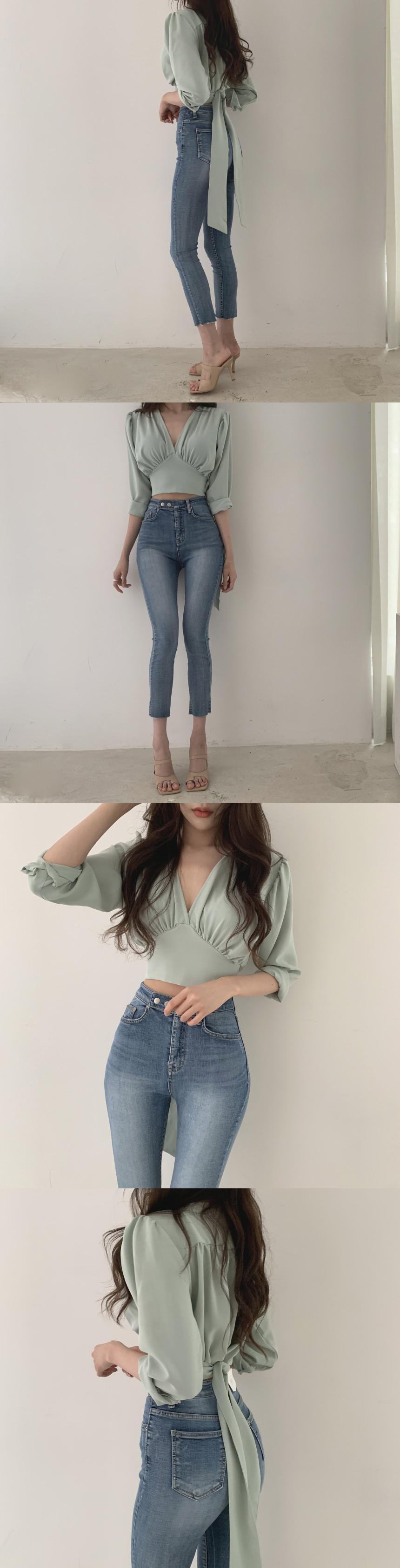 Vネックプリーツスリムバックリボン長袖スリーブシャツ ロング エレガント ICC_レディース89311560436