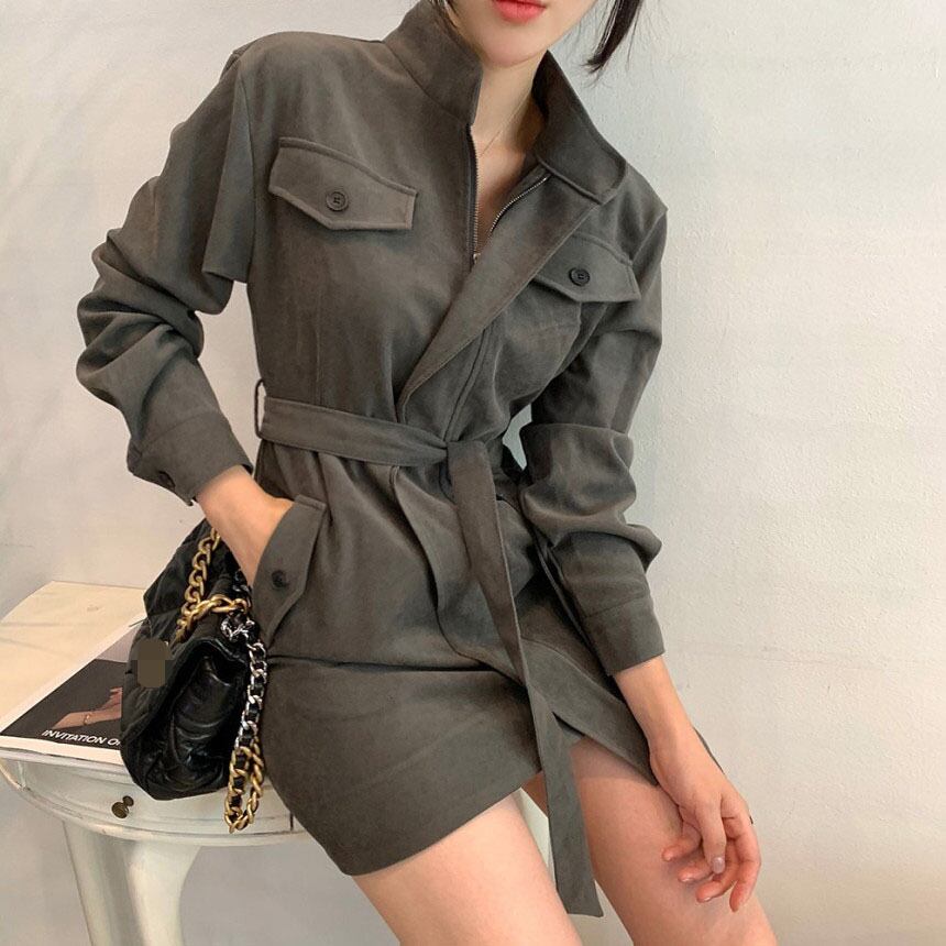 オータムスタイルスタンダードソリッド カラーウェストドレス レディース ロング レトロ レース 秋物 レースアップ ソリッドカラー ICC_レディース63093003693