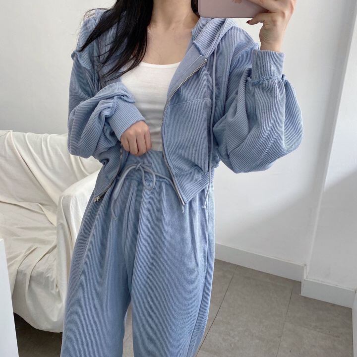 オータムウィンターカラーフードセーター ジャケット ハイウェストウェストカジュアルパンツ レディース 秋物 冬物 ICC_レディース7643532710