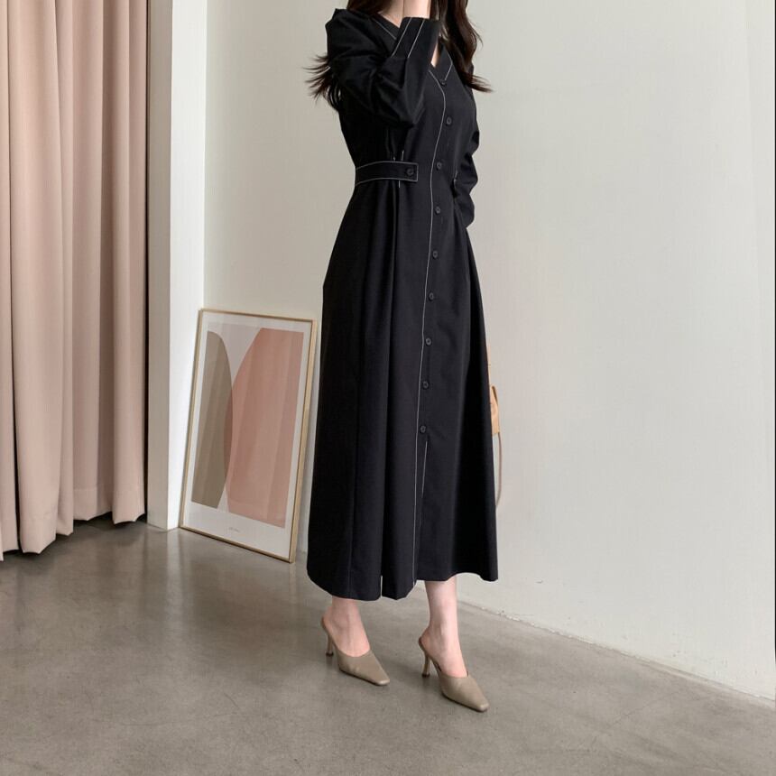 スタンダードスリムプリーツドレス レディース レトロ ストリート ICC_レディース3732637899