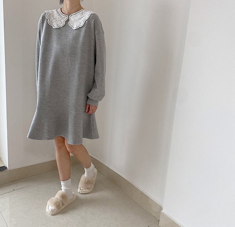 オータムウィンタースタンダードカラールーズセーター 長袖スリーブドレス ロング レッド レトロ 刺繍 秋物 冬物 ICC_レディース78419793243