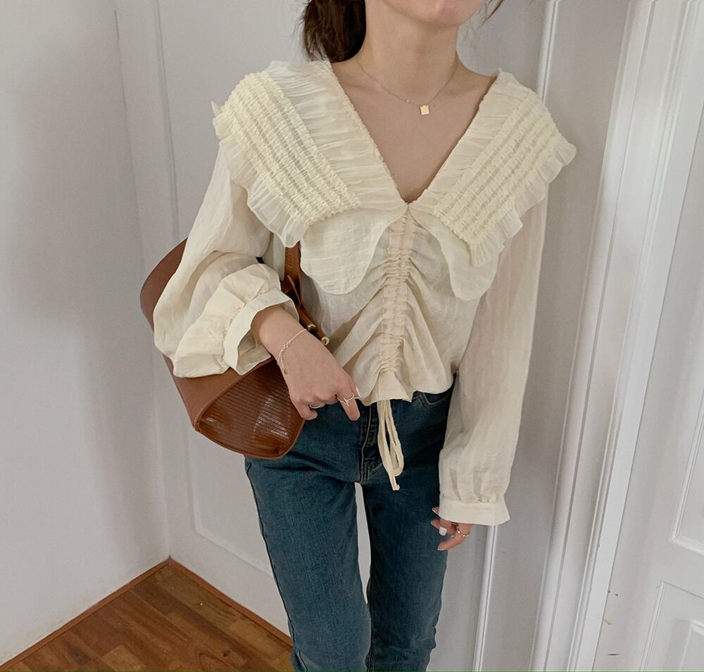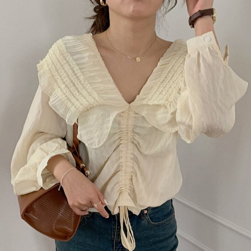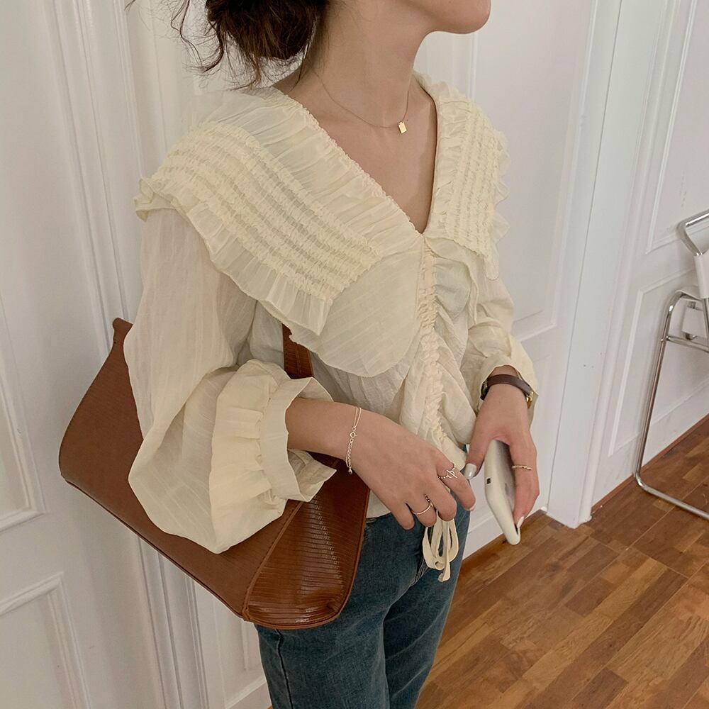 オータムカラースリーブシャツ ホワイトブラウス トップス ランタンスリーブ 秋物 ICC_レディース29353947808