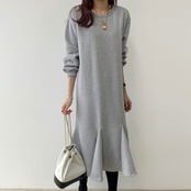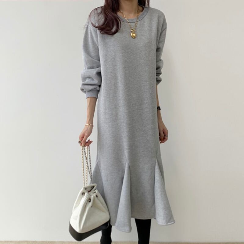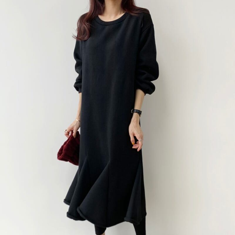 ダークブラックラウンドネックルーズカジュアルベルベットロングセーター ドレス レディース Oネック ICC_レディース55986990689