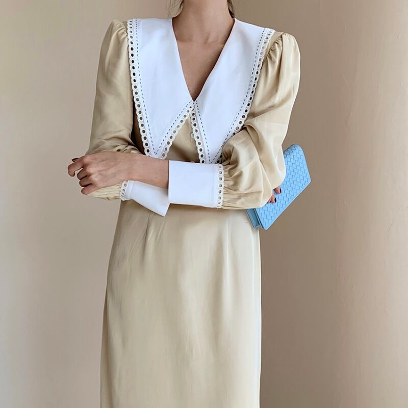 ロングドレス レディーススプリングオータムイエローレース薄手ハイウェストウェストスカート 春物 秋物 ステッチ ICC_レディース34577794264
