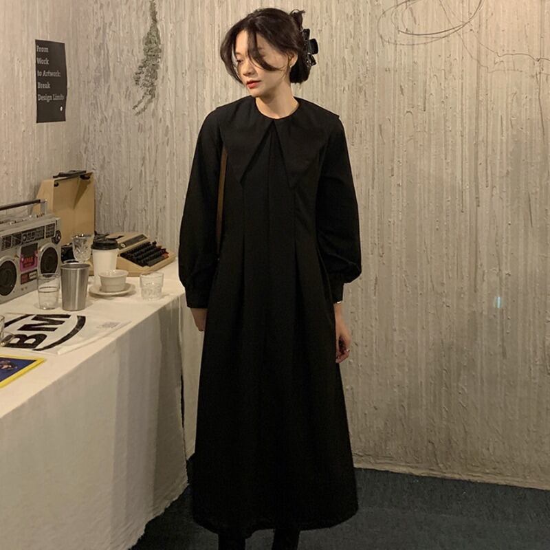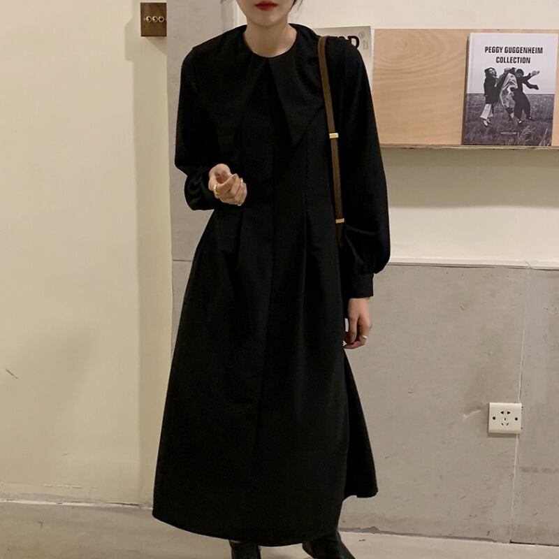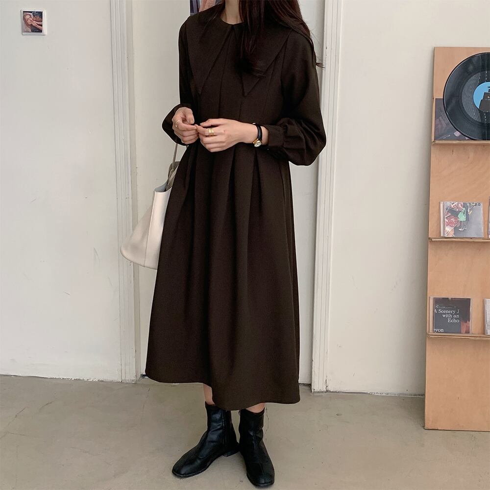 オータムスタイルスタンダードハイウェストウェスト長袖スリーブドレス ロング レトロ 秋物 ICC_レディース43656743387