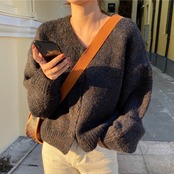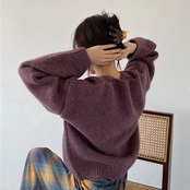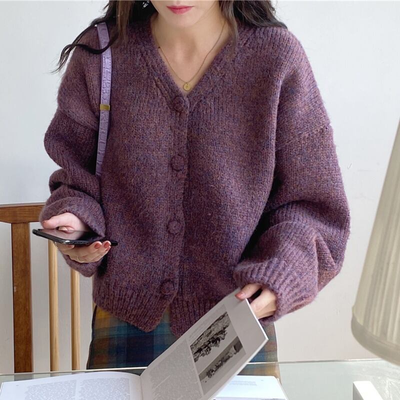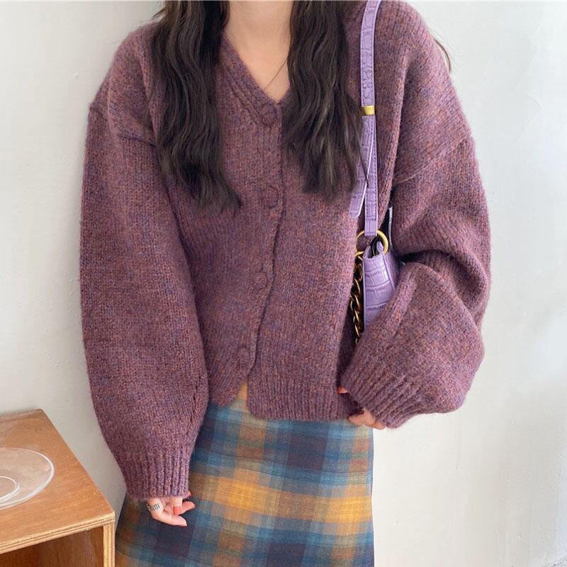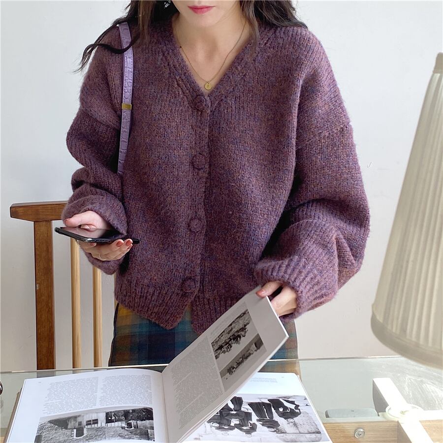 セーター カーディガンスプリングオータムショートラウンドネックコート ジャケット 春物 秋物 Oネック パープル ICC_レディース21775424835