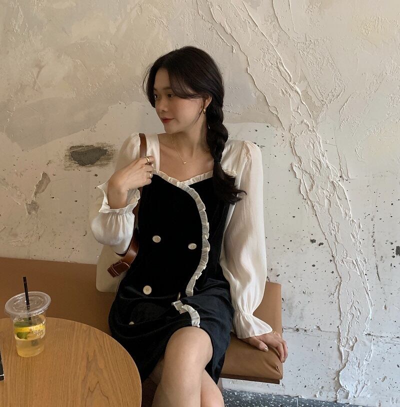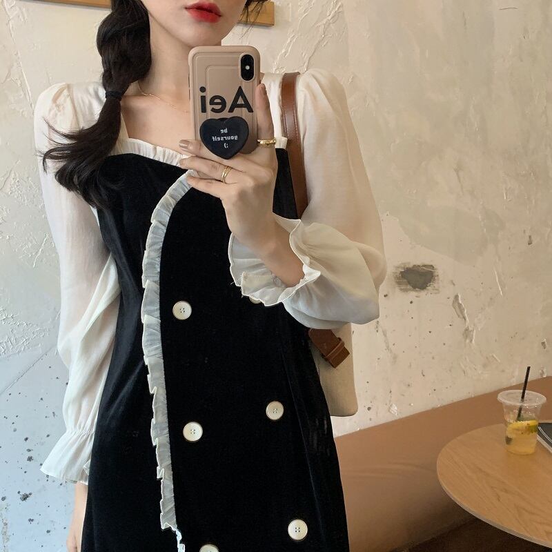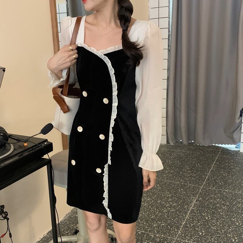 スタイルオータムスタンダードドレス スリムAラインブラック レトロ 秋物 ICC_レディース78818897793