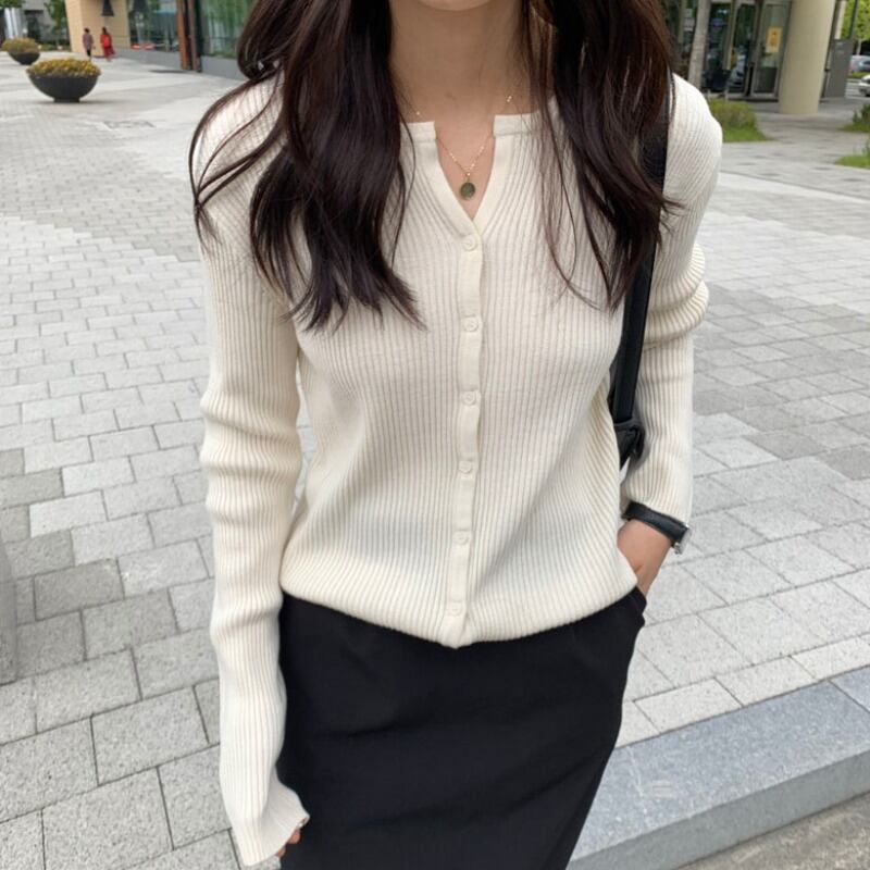 オータムウィンターカラーカーディガンソリッド スリムセーター ニットトップス レディース 秋物 冬物 ソリッドカラー ICC_レディース17259965425