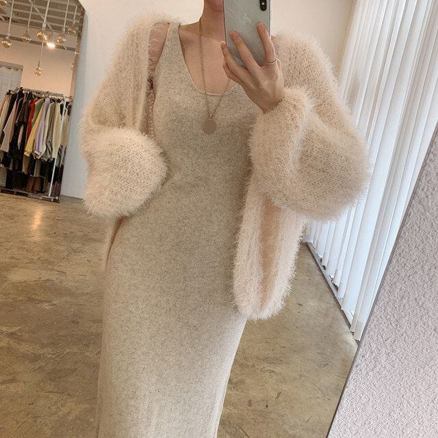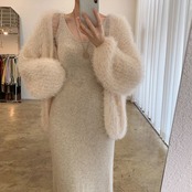 色:アプリコットカーディガン,ダークグレーのカーディガン,Beanグリーンカーディガン,アプリコットスリング,ピンクのサスペンダー,グレースリング