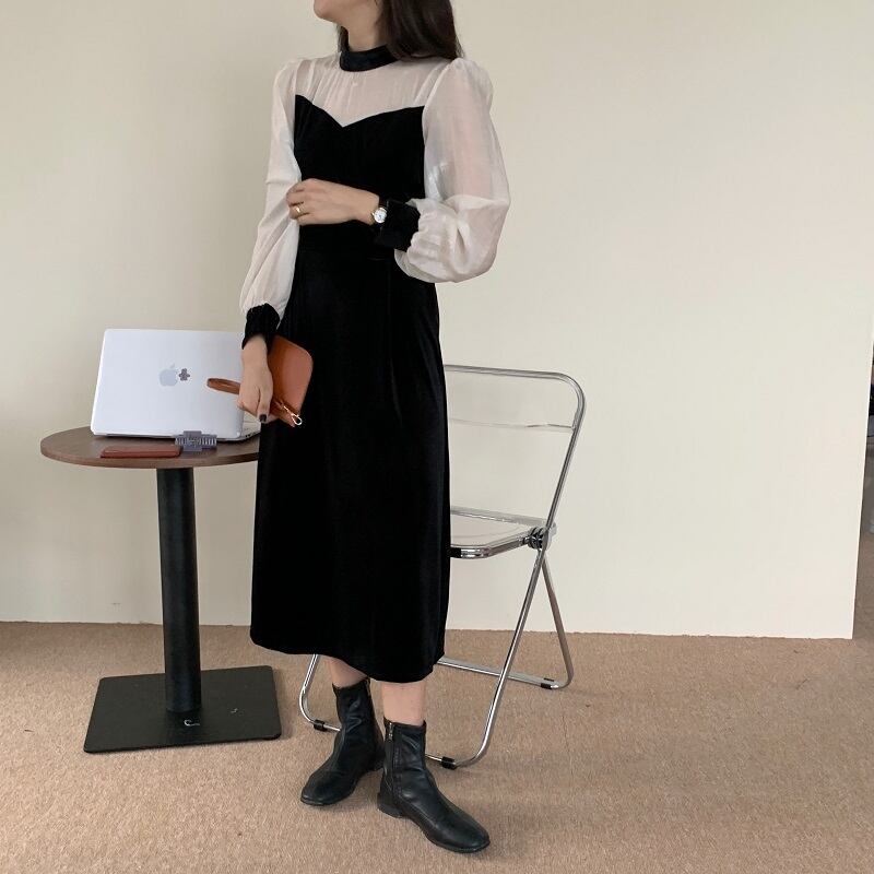 ゴールドベルベットオータムウィンター薄手ブラック 秋物 冬物 スカート Oネック ICC_レディース73442332151