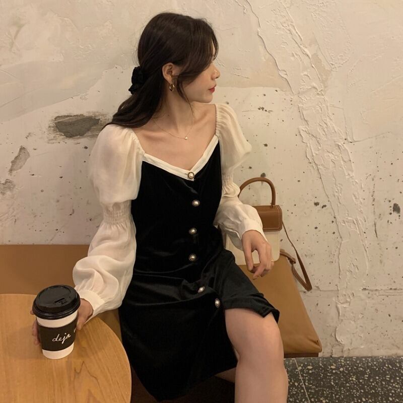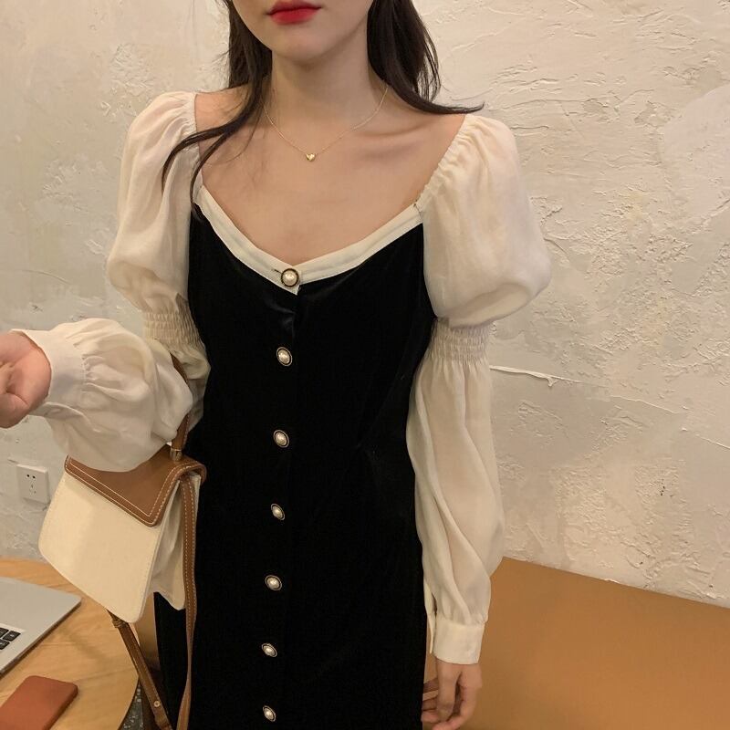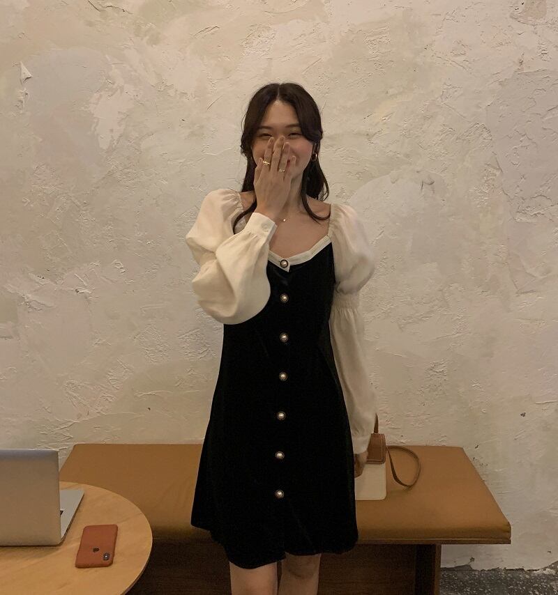 ウェストスリムドレス スプリングオータムブラック 春物 秋物 ICC_レディース89643538615