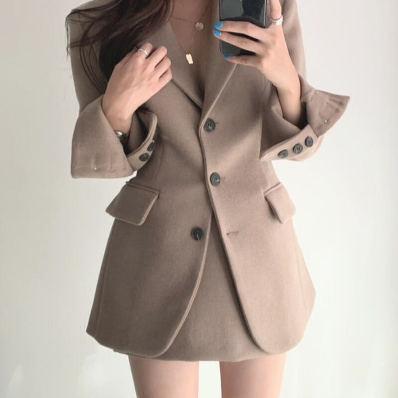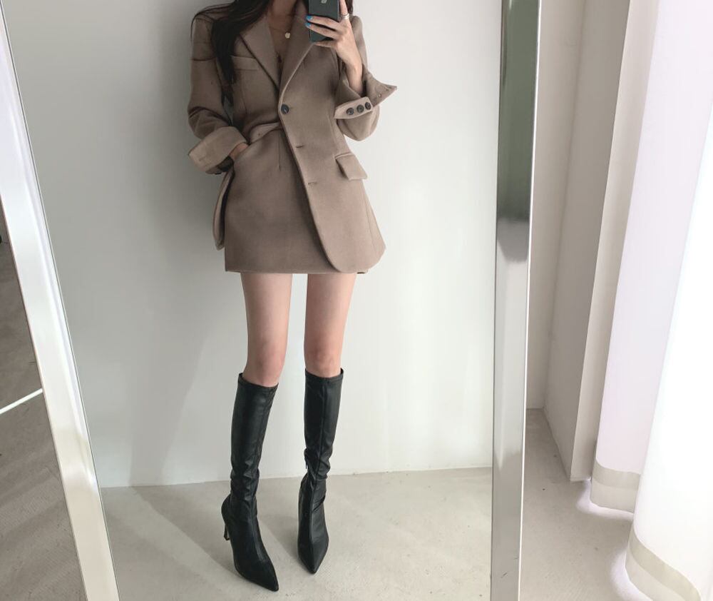 オータムウィンターボタンコート ハイウェストウェストスカート 秋物 冬物 ICC_レディース9259902066