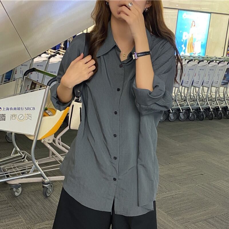 シャツ オータムスタイルスタンダードルーズ ロング レトロ 秋物 ICC_レディース81318594835