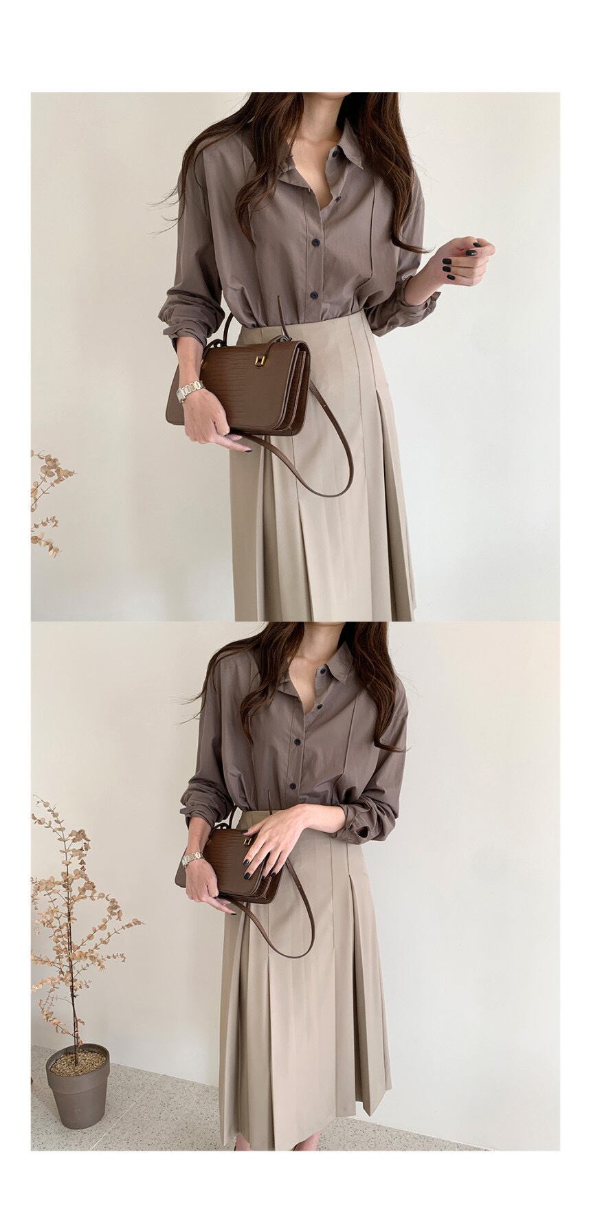 オータムシャツ ハイウェストプリーツスカート ロング 秋物 ICC_レディース1136444650