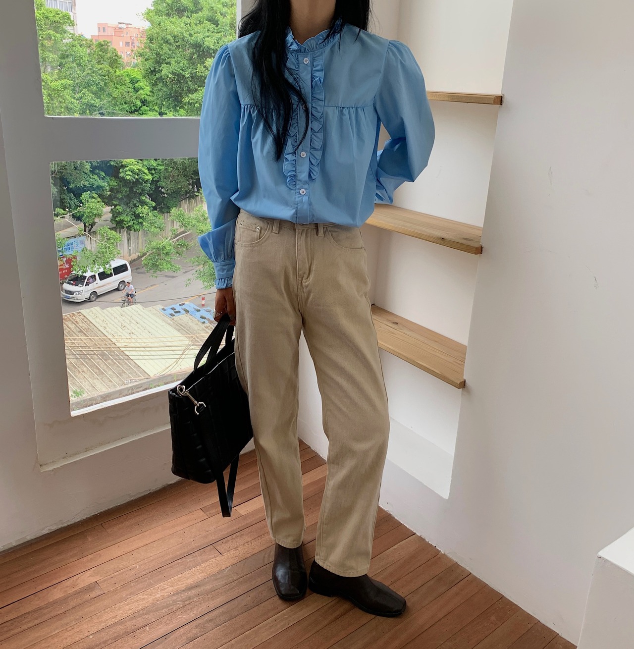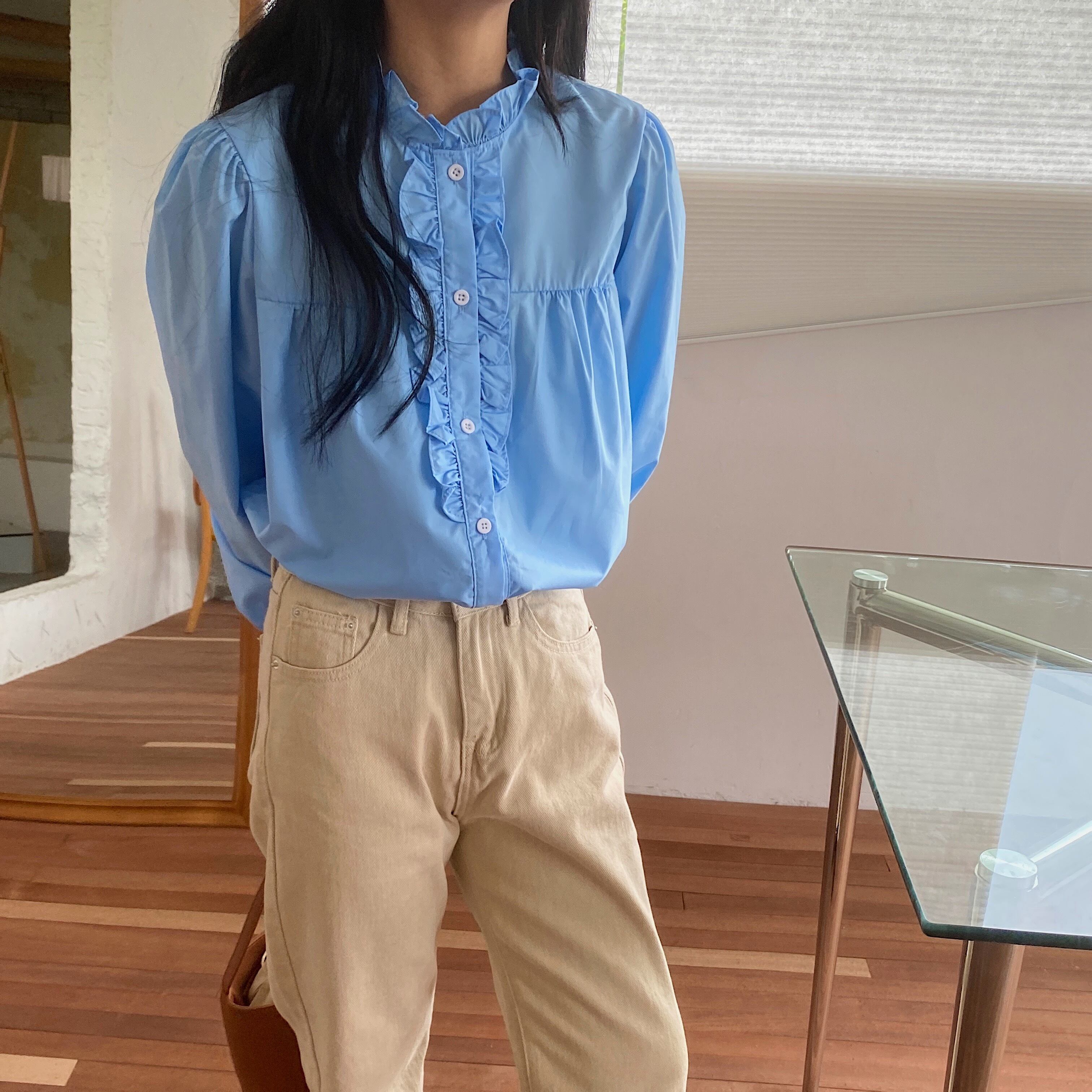 スタイルブルーシャツ オータムスタンドカラーカラールーズ長袖スリーブトップス ロング 秋物 ICC_レディース69395739297