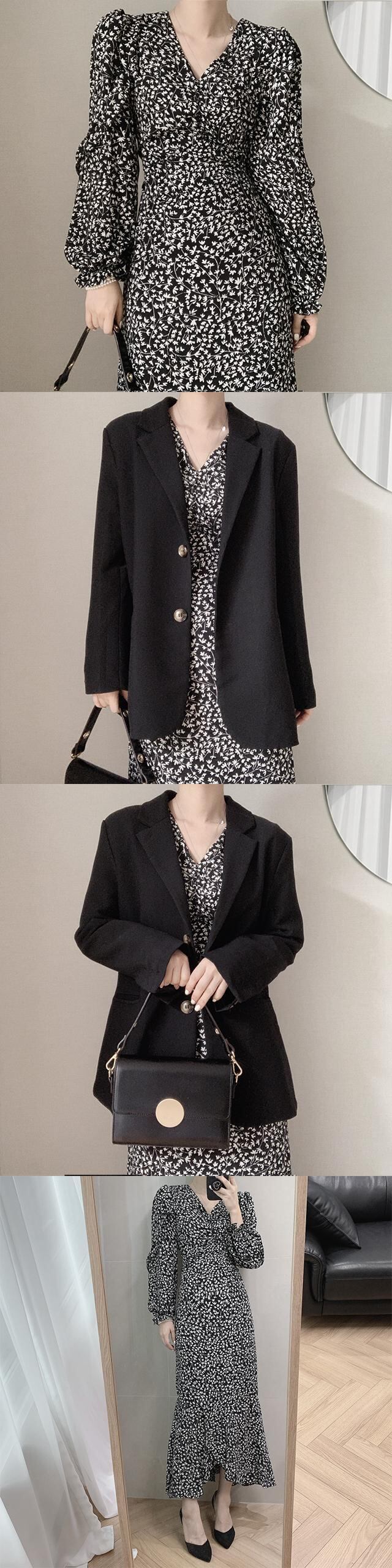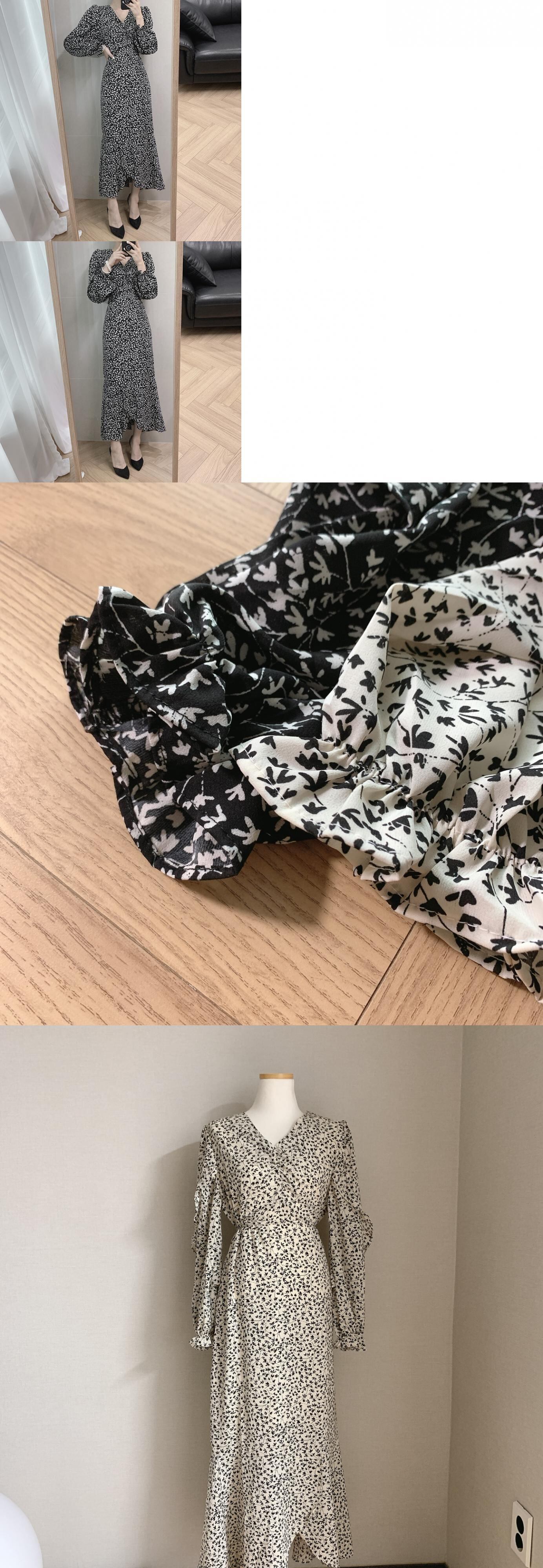 オータムスタンダードVネックフローラルウェストドレス レディース レトロ 大人ガーリー スウィート キュート カジュアル 秋物 花柄 ICC_レディース46039309813