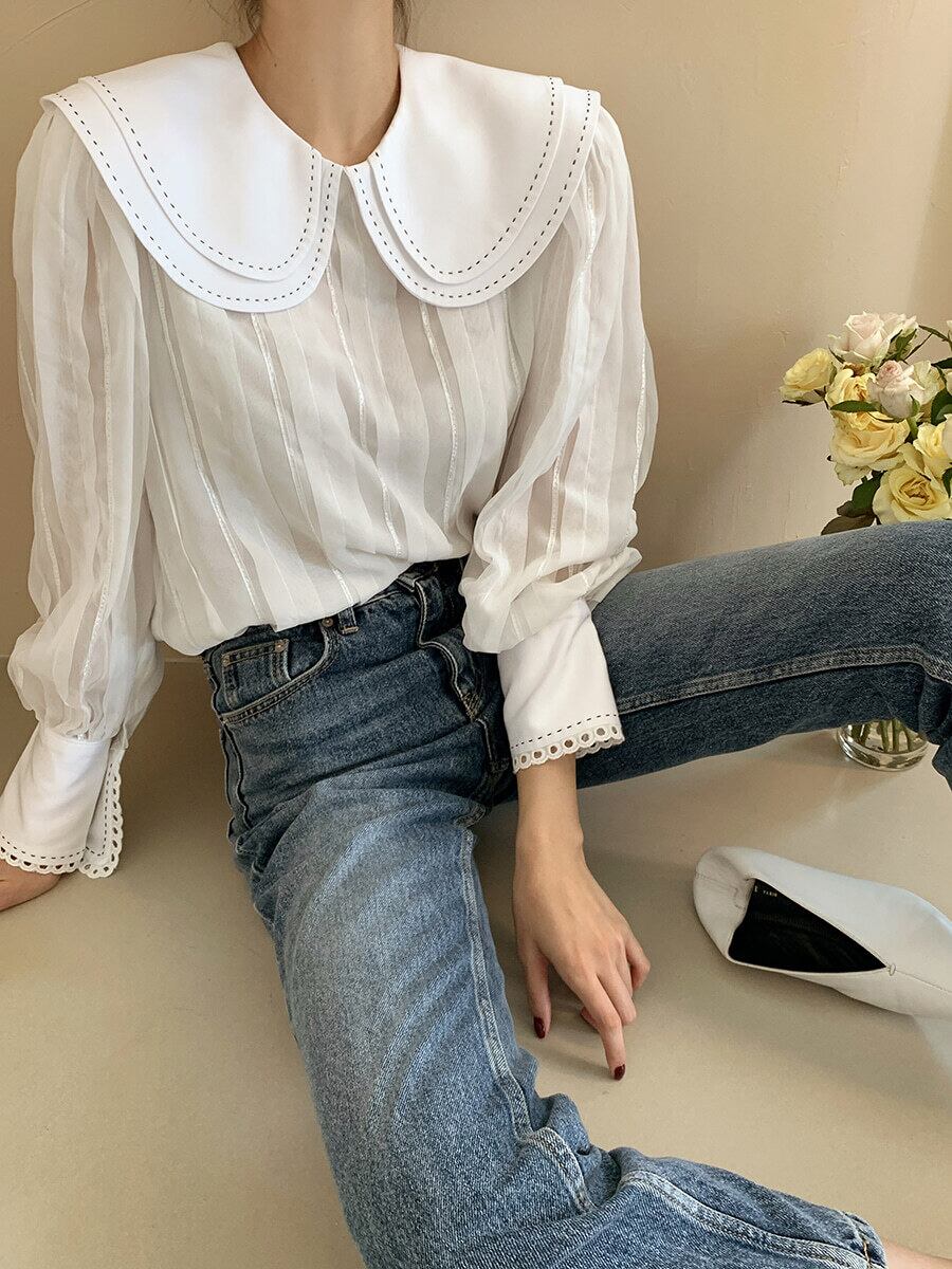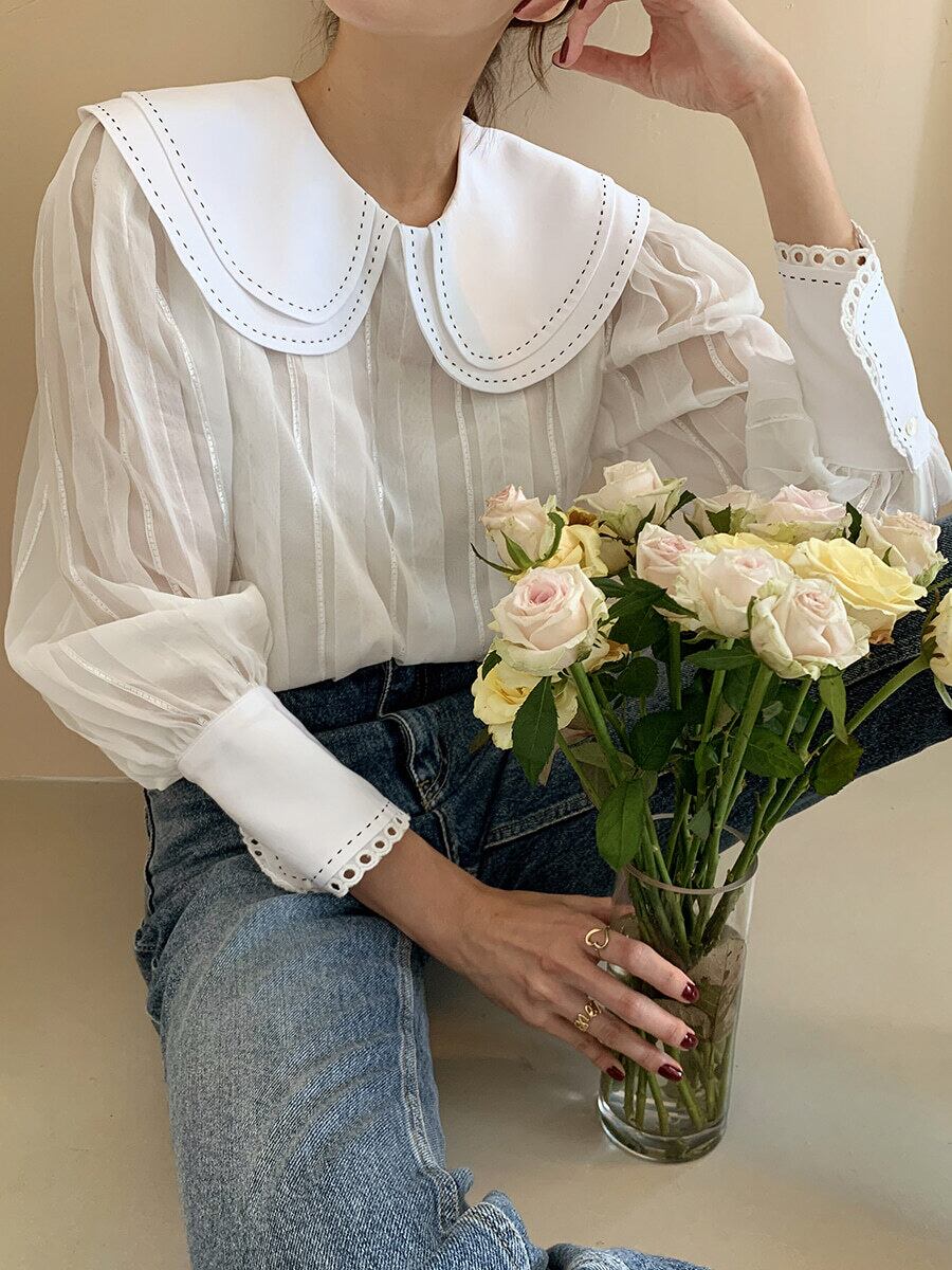 シャツ オータムカラーシフォンルーズスリーブトップス ランタンスリーブ 秋物 ICC_レディース83855710346