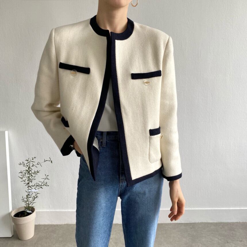 オータムラウンドネックカラーボタンショートジャケット 秋物 Oネック ICC_レディース26549834179