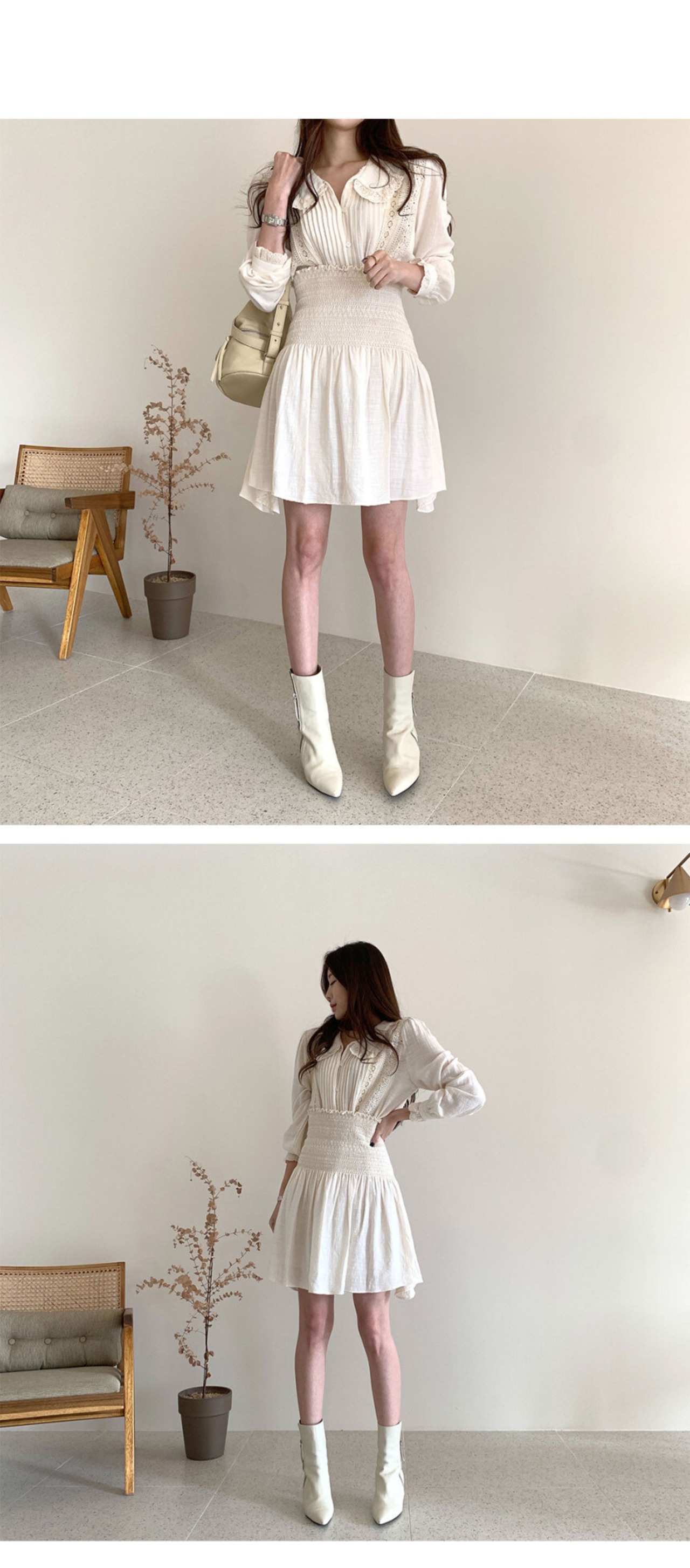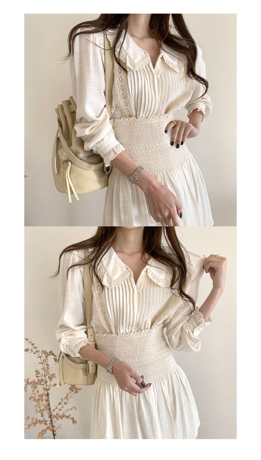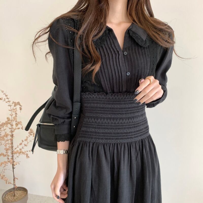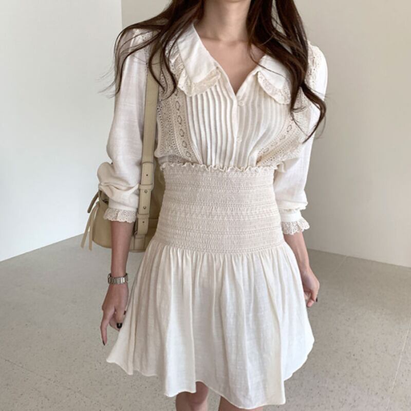 オータムレースサイドカラーシャツ トップス ストレッチハイウェストウェスト薄手スカート エラスティック 伸縮 秋物 ICC_レディース64977075199