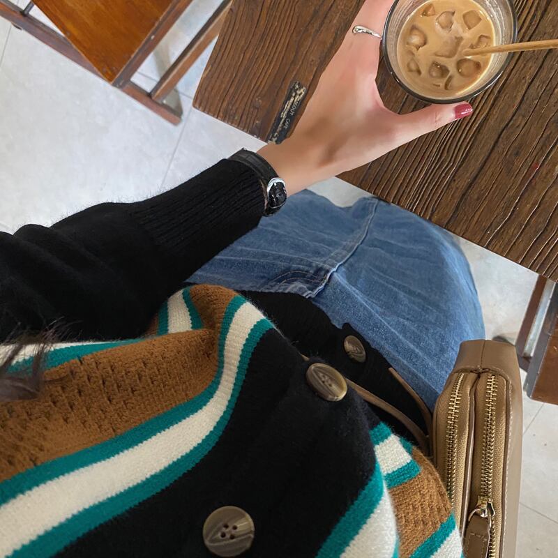 スタイルスタンダード長袖スリーブカラーストライプニットセーター レディース ロング レトロ ICC_レディース54748052889