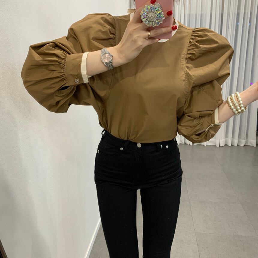 スタイルカラーラウンドネックバックリボンルーズスリーブシャツ レディース ランタンスリーブ Oネック ICC_レディース17338851859
