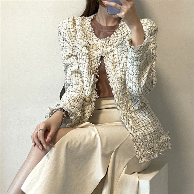 オータムウィンタースタイルルーズツィードジャケット ロング 秋物 冬物 ICC_レディース93813074237