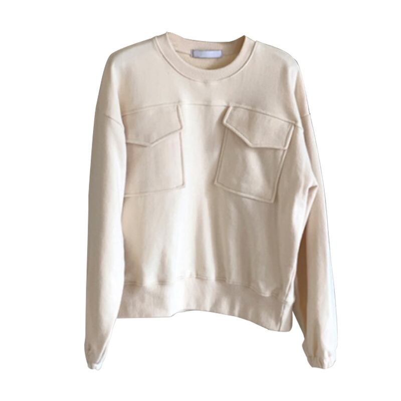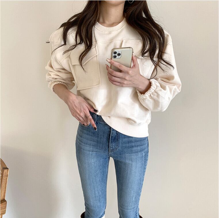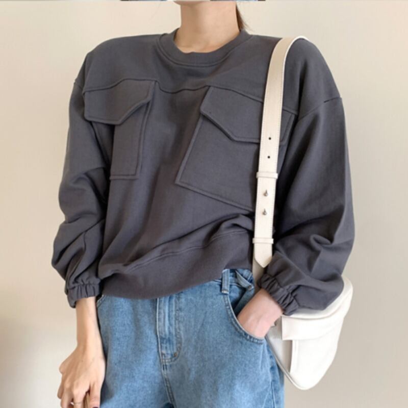 オータムラウンドネックプルオーバー ルーズトップス ダブルポケットカジュアルセーター レディース ロング 秋物 Oネック ICC_レディース87001587764