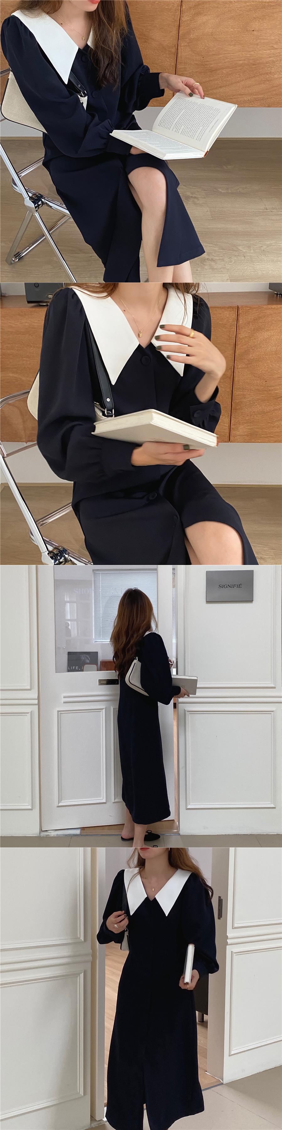 スタイルカラーシングルブレスト薄手ウェストプリーツドレス ICC_レディース82340310049