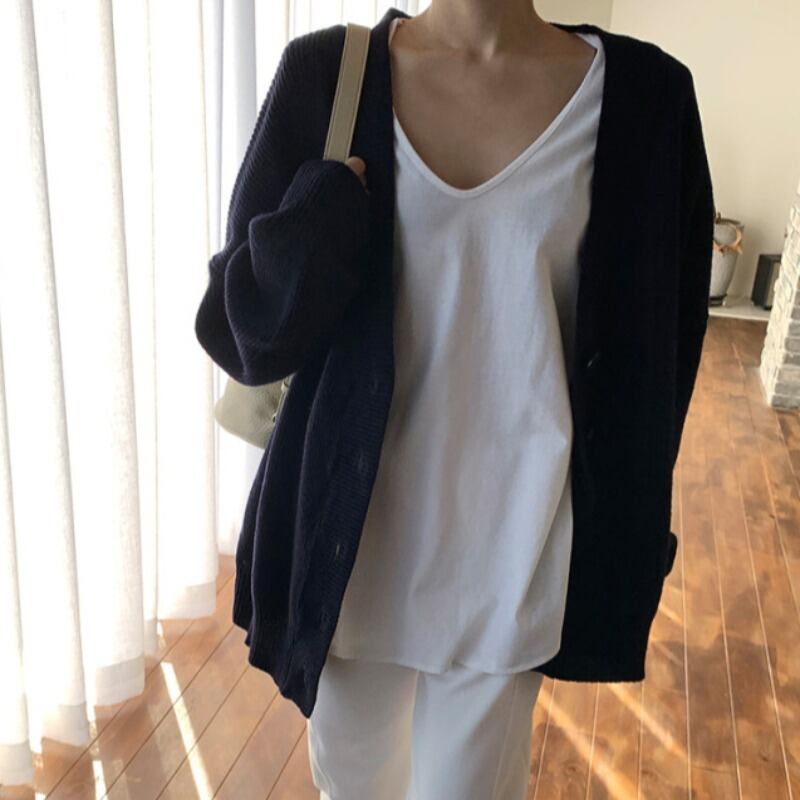 セーター レディースルーズオータムウィンターVネックニットカーディガンジャケット ロング 秋物 冬物 ICC_レディース42142715476