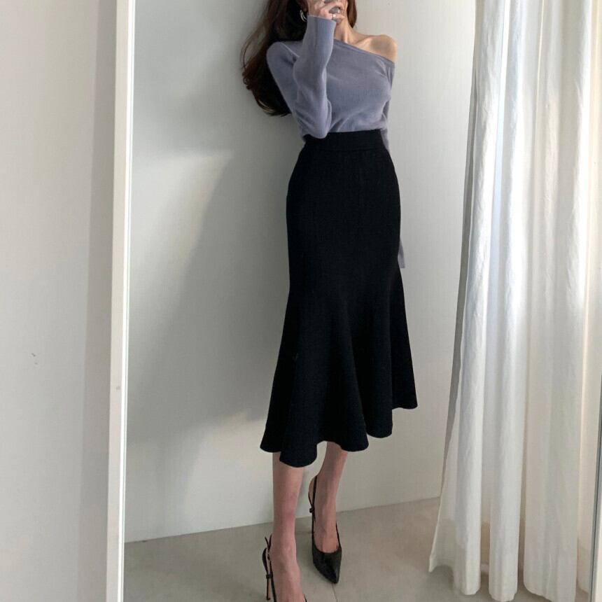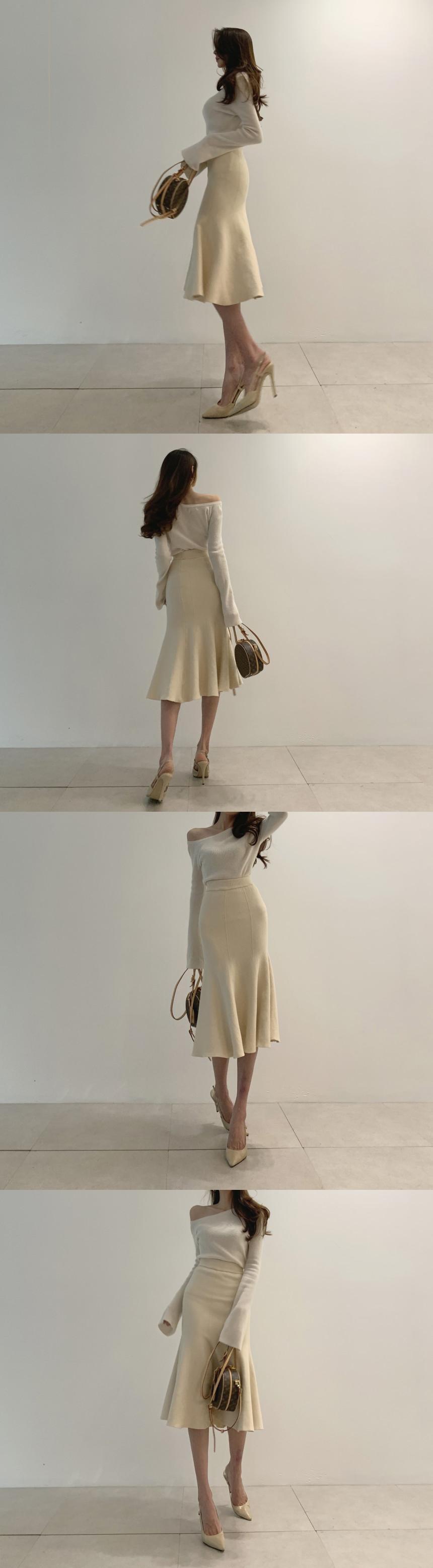カラーニットセーター ハイウェストウェストスカート ロング エレガント オフショルダー ICC_レディース64062972081
