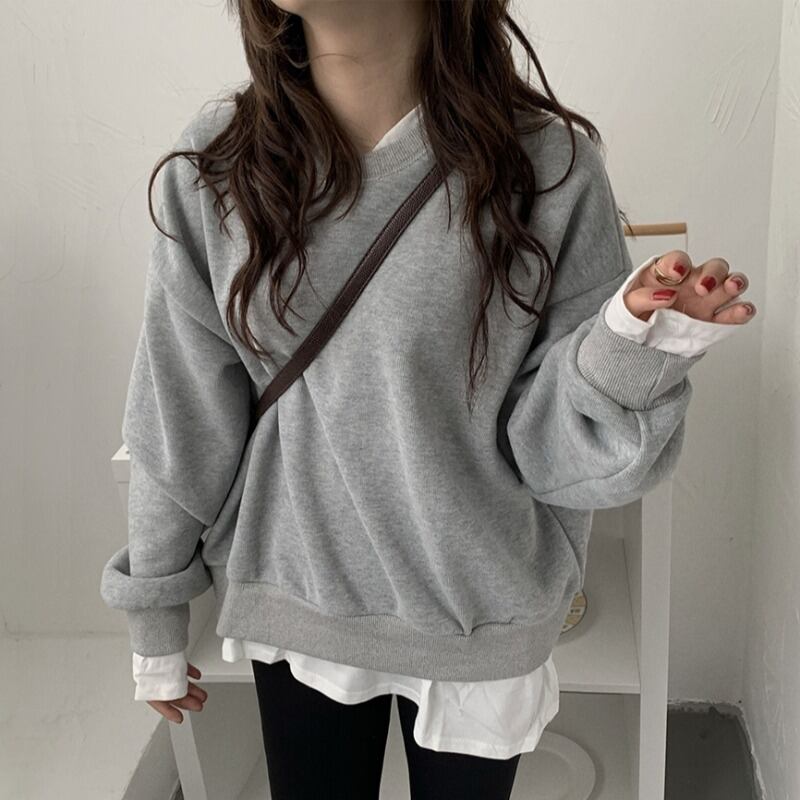 オータムウィンタースタンダードラウンドネックプルオーバー カジュアルルーズセーター レディース レトロ 秋物 冬物 Oネック ステッチ ICC_レディース95078828665