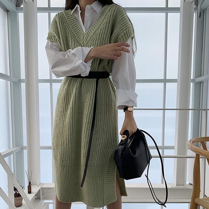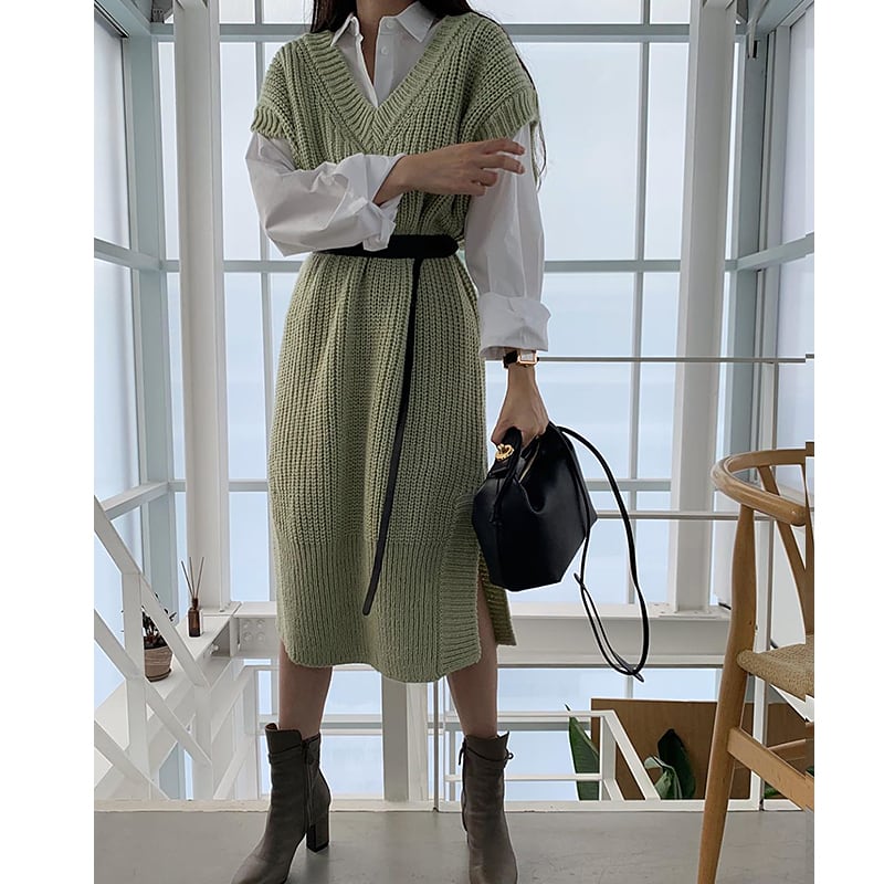 色:シャツ,ニットワンピース