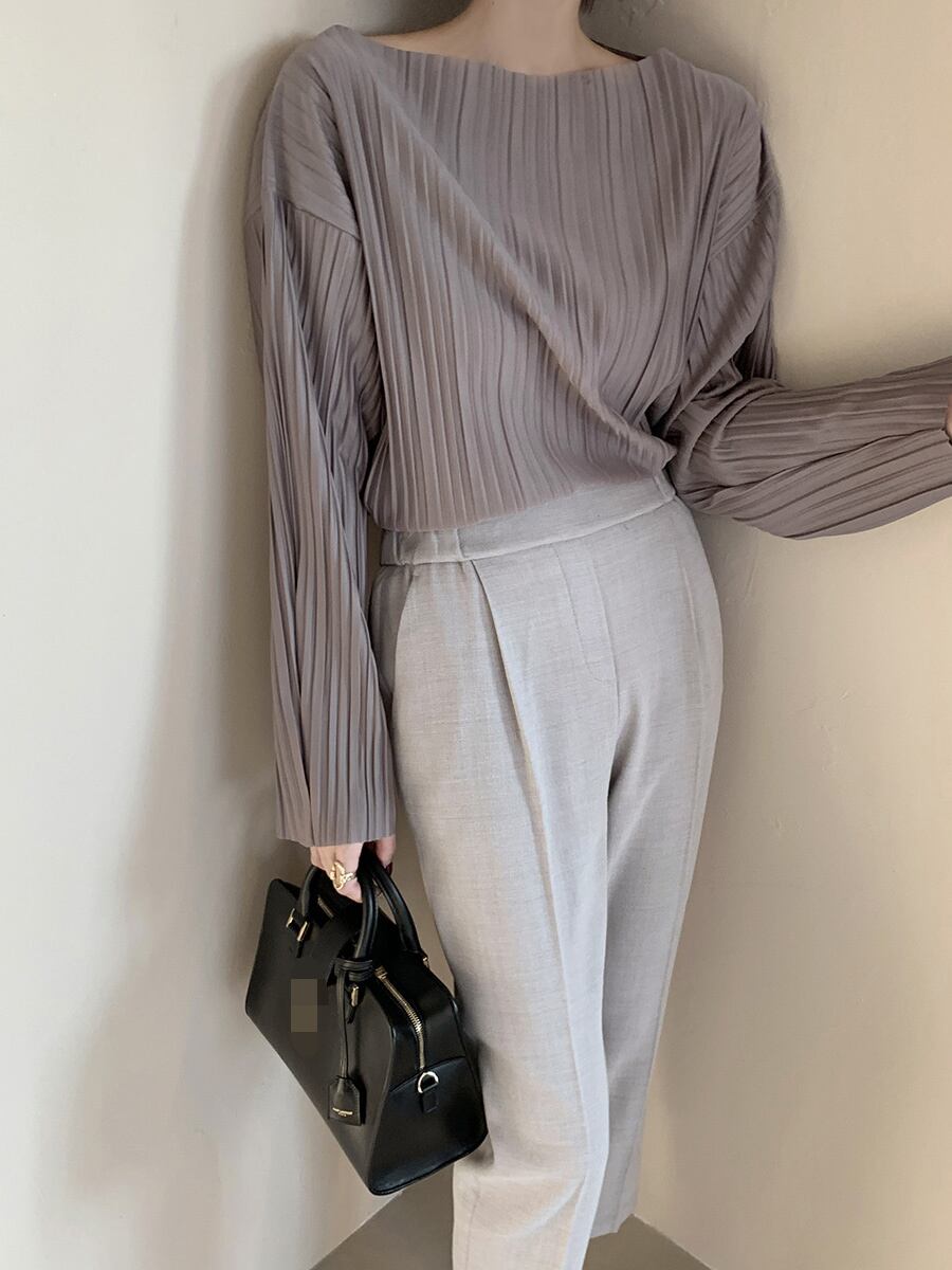 オータムラウンドネックルーズホワイトシャツ トップス レディース ロング 秋物 Oネック ICC_レディース42002165310