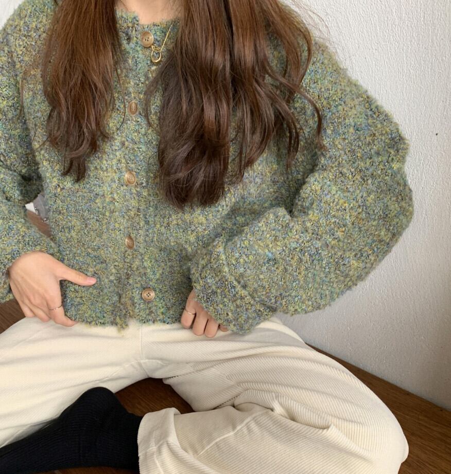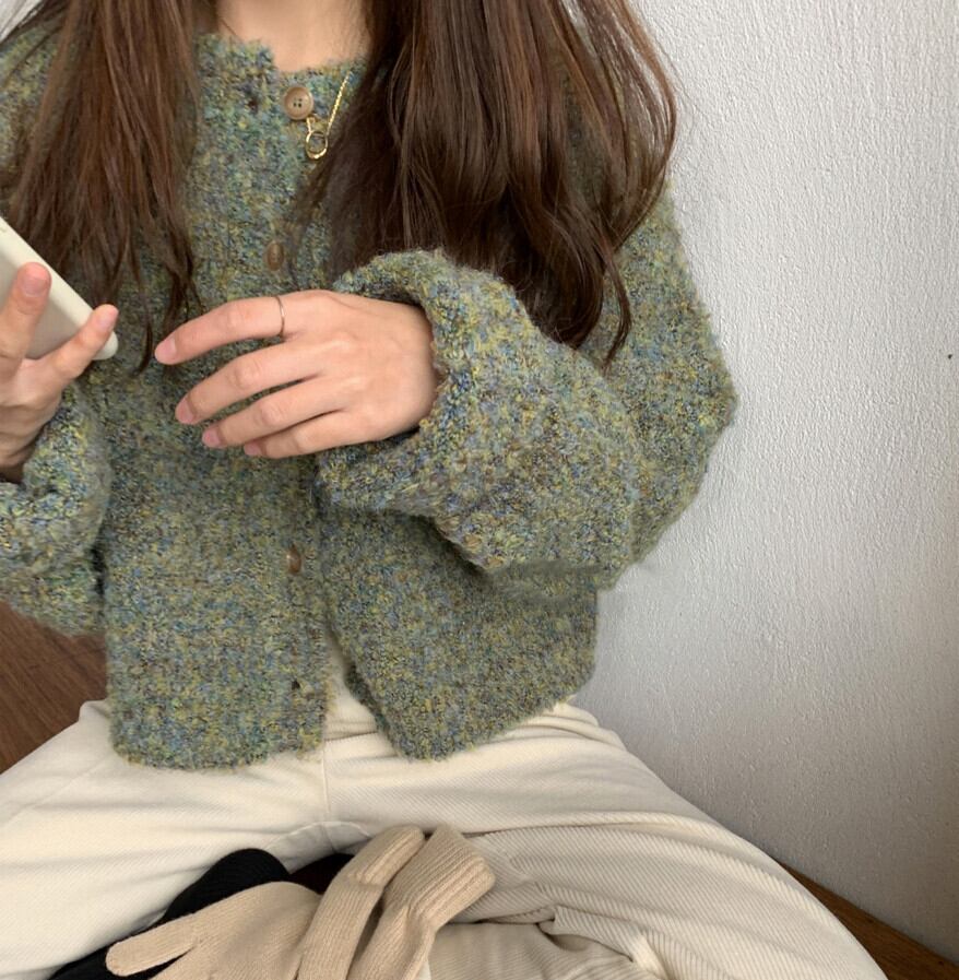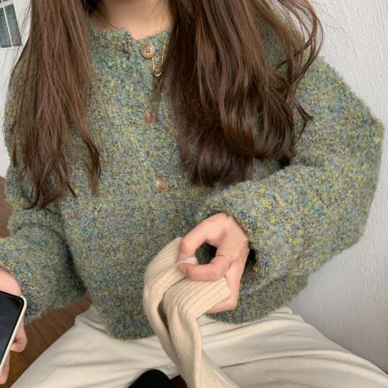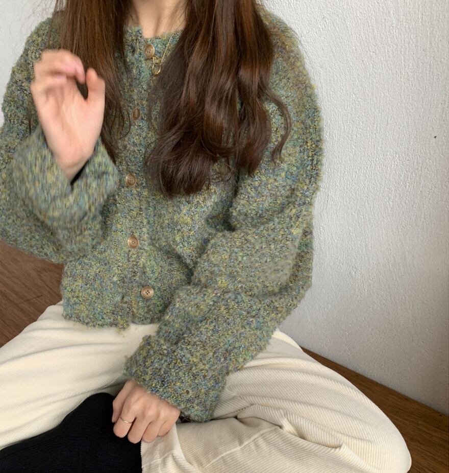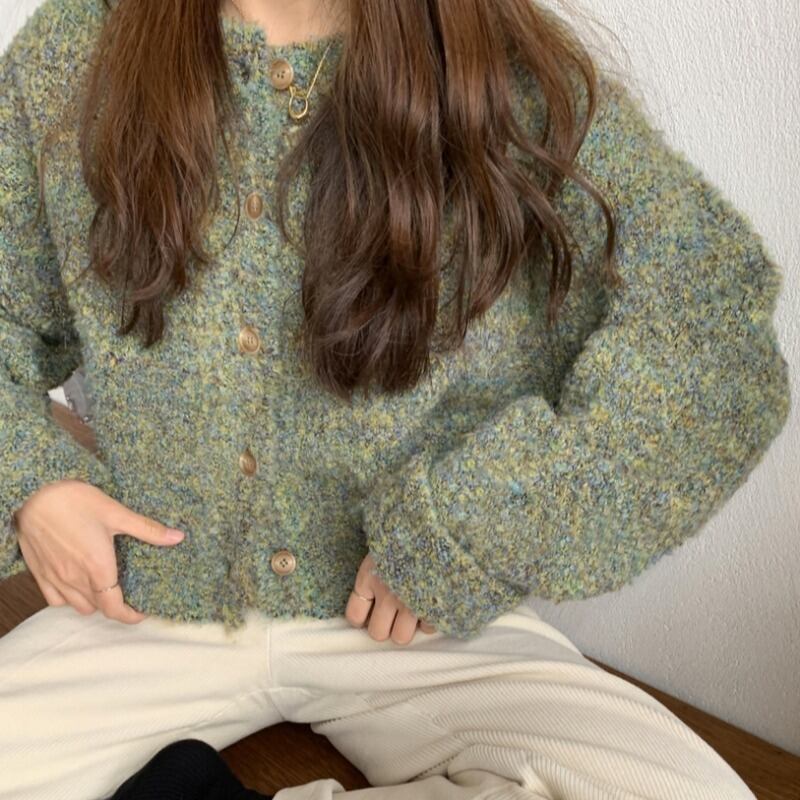 スタイルスタンダードグリーンラウンドネックカーディガンルーズセーター レディースウィンター レトロ 冬物 Oネック ICC_レディース86768756450