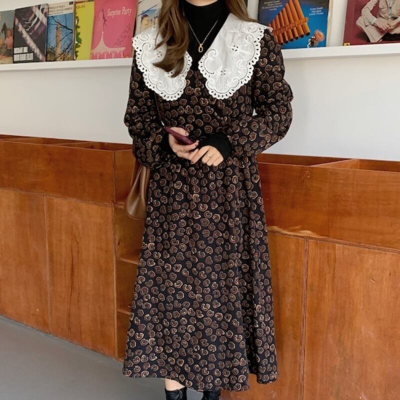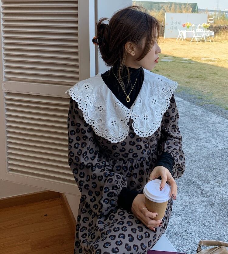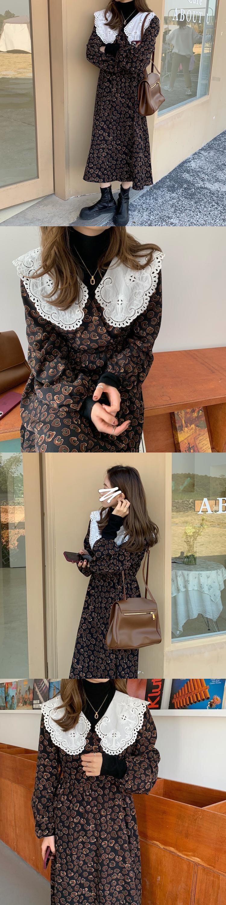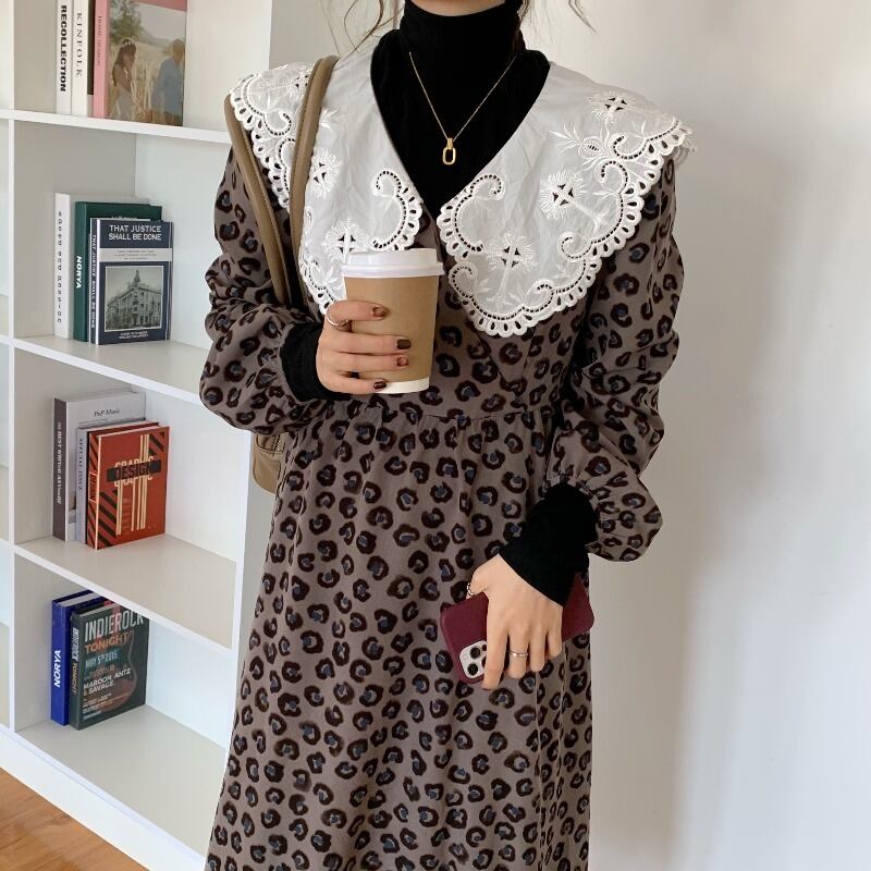 カラーレオパードプリント柄ドレス レッド 刺繍 ステッチ ICC_レディース31014723681