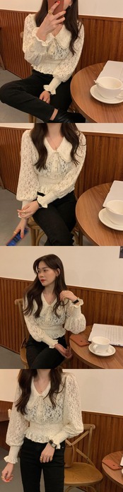 レーススタイルパールカラーショートウェストトップス ランタンスリーブ 真珠 ICC_レディース12212822195