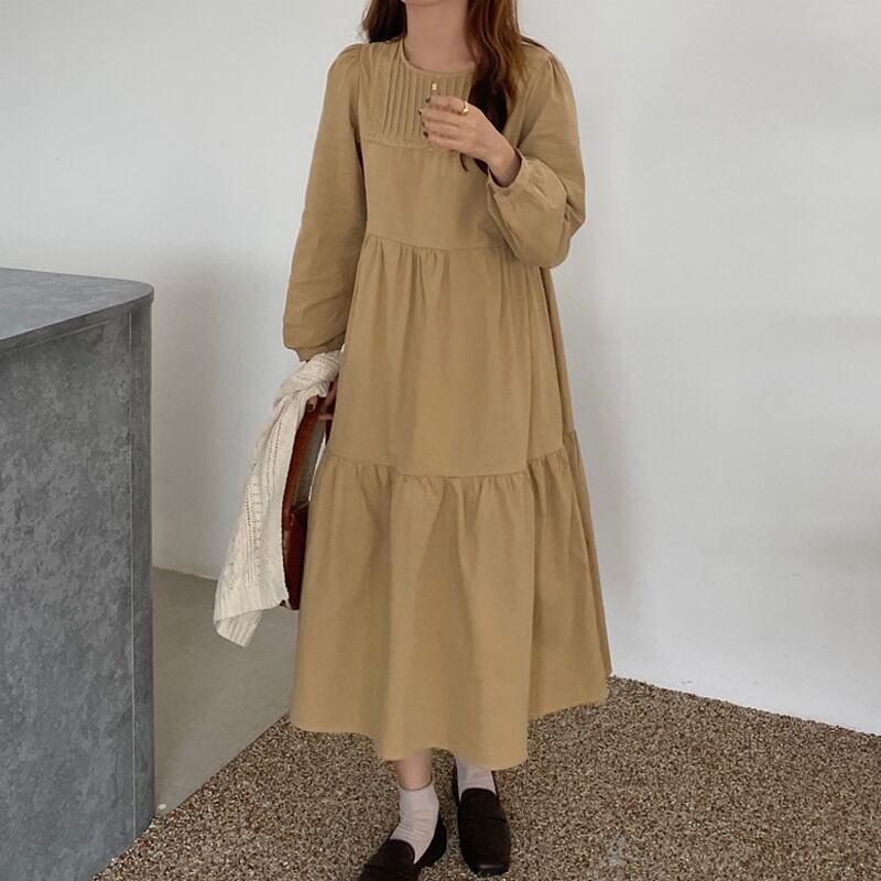 スプリングロングスカート スタンダードルーズドレス レトロ 春物 フラワーデザイン 左左右右29385199978