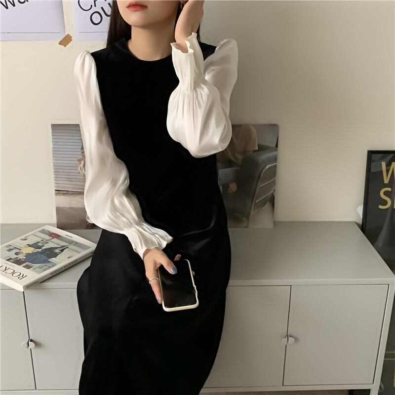 スタンダードゴールドベルベットドレス スリーブロングスカート レトロ ICC_レディース93678625705