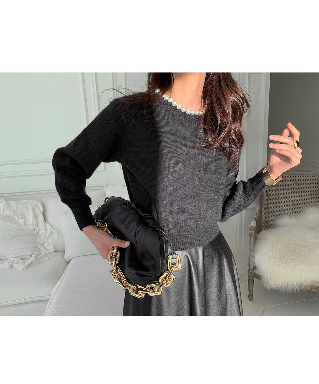 パールニットセーター スカート レッド 真珠 ICC_レディース10705010336