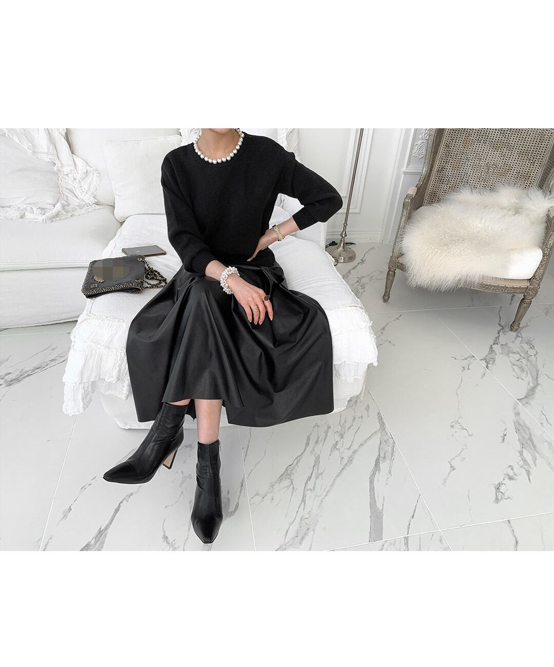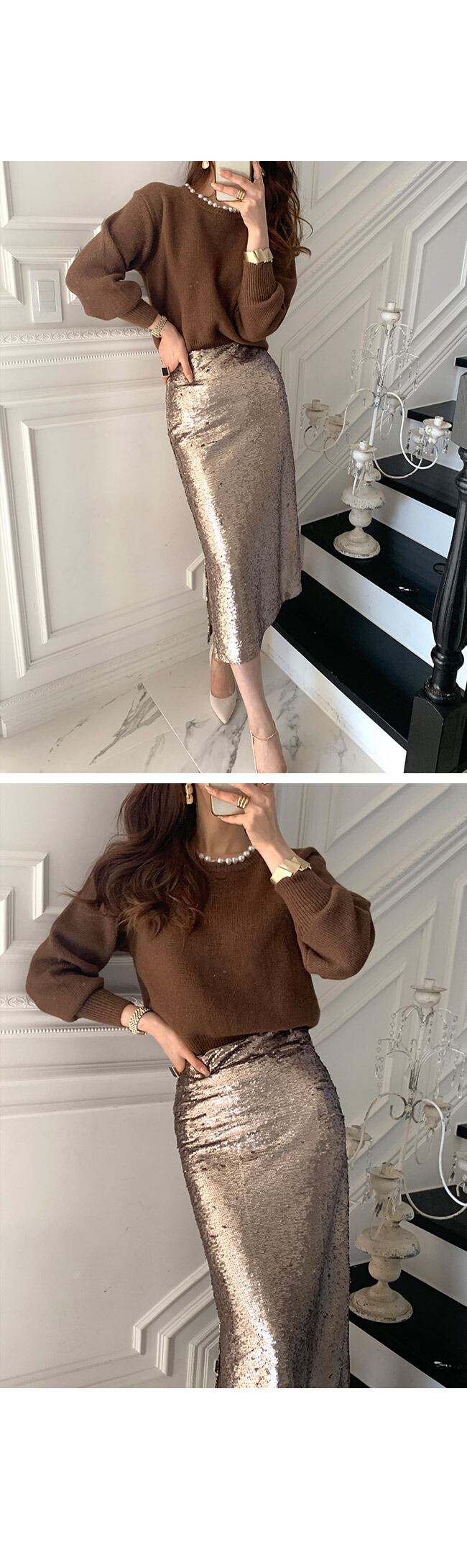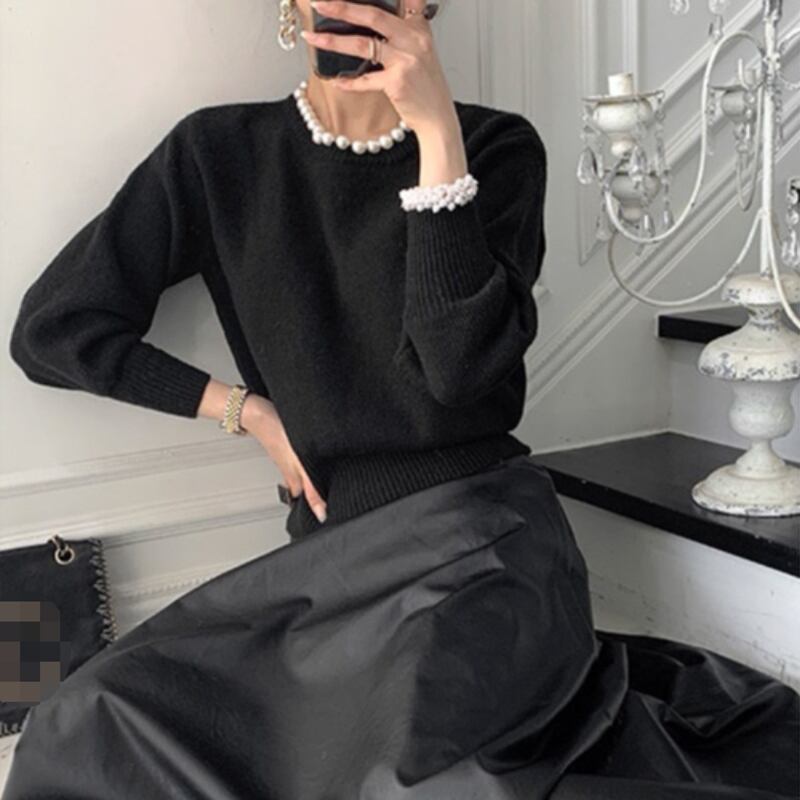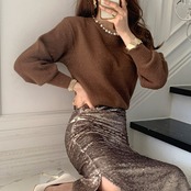 色:黒いセーター,茶色のセーター,黒スカート