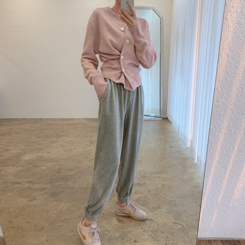 色:ピンクのセーター,キャラメルセーター,グレーパンツ,黒スカート