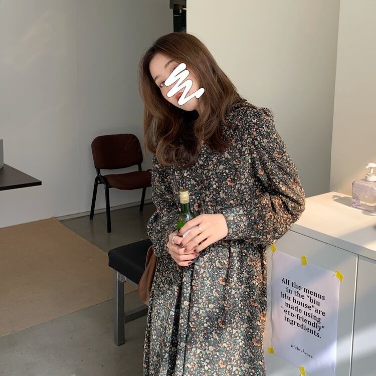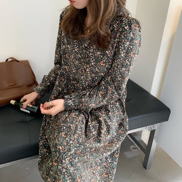 コーデュロイプリント柄カラー長袖スリーブドレス ロング ICC_レディース88995168373