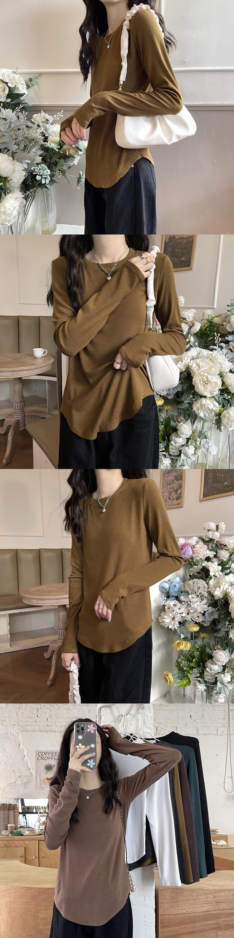 女性のボトミングシャツは快適です、内側、秋のルーズ、自己栽培、不規則、外側の着用ワイルドインスーパーファイア長袖Tシャツ ロング オータム 秋物 可可里92612927667