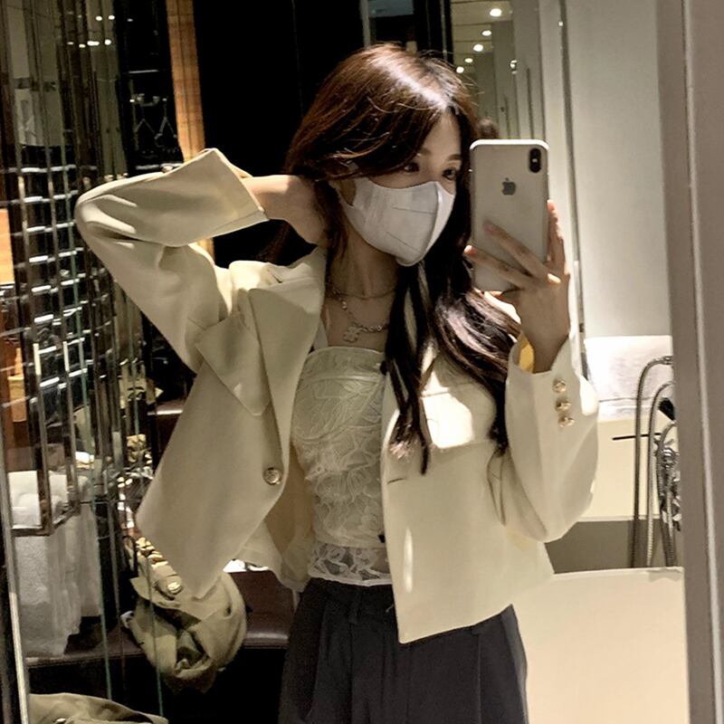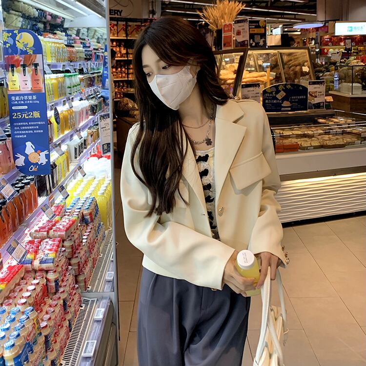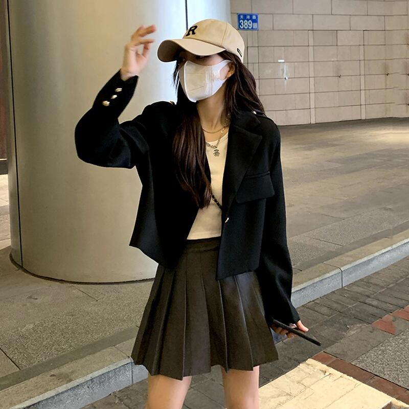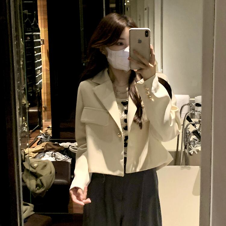 ストリートの長袖スーツジャケットのトレンドを爆撃する短いセクションのニッチな気質の小さな男性の小さなスーツの女性の2021年秋新バージョン ショート ロング オータム 秋物 可可里83660185247