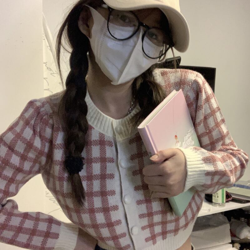 チェック柄ニットカーディガン秋バージョン2021甘くてスパイシーなスタイルスモールシンスリムロングスリーブトップ女性 長袖 大人ガーリー スウィート キュート カジュアル オータム 秋物 可可里86874902274