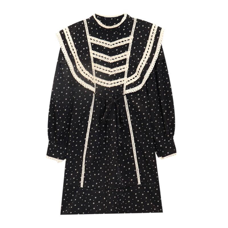 水玉レース長袖ワンピースレディースデザインセンスニッチ2021年秋新作フレンチウエストスリムスカートタイド ロング オータム 秋物 可可里84073974203