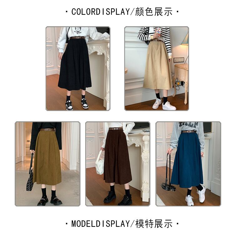 コーデュロイハーフスカート秋バージョン2021ニューハイウエストスリミングオールマッチミドル丈フレンドバストスカート婦人服 ハイウェスト オータム 秋物 可可里53835890523
