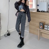 ジーンズ女性2021年新春秋レトロ香港スタイルオールドパパパンツシックルーズスモールデザインセンスパンツトレンド スプリング 春物 オータム 秋物 可可里60602086842