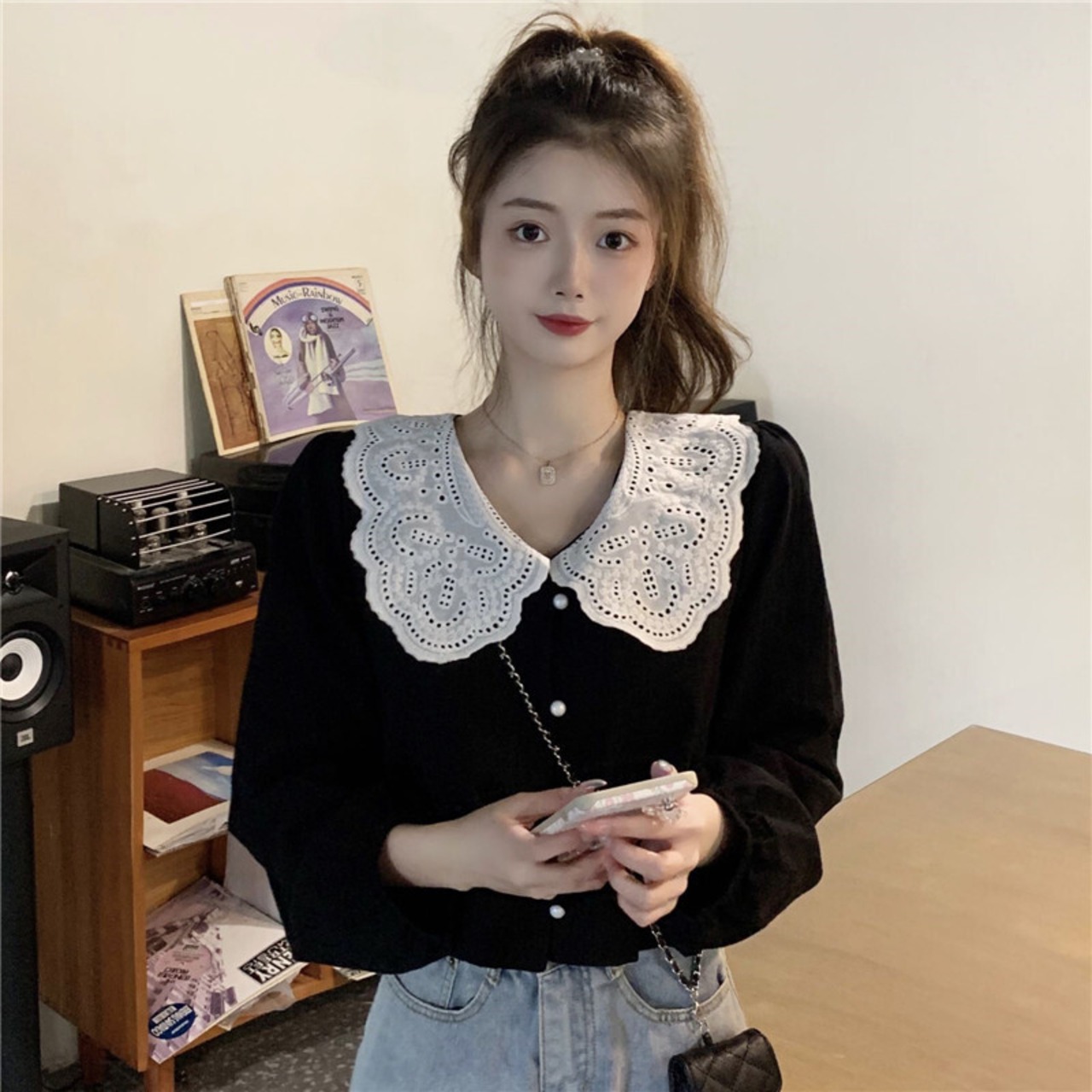 シックな初秋年齢削減トップスレディースドールカラーシャツ2021新春秋フレンチデザイン長袖シャツ ロング スプリング 春物 オータム 秋物 可可里91550674057